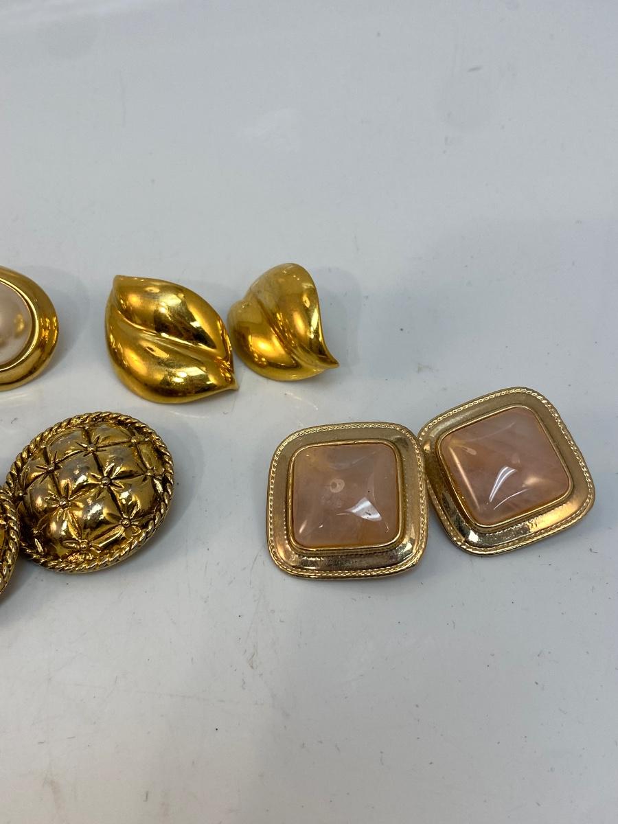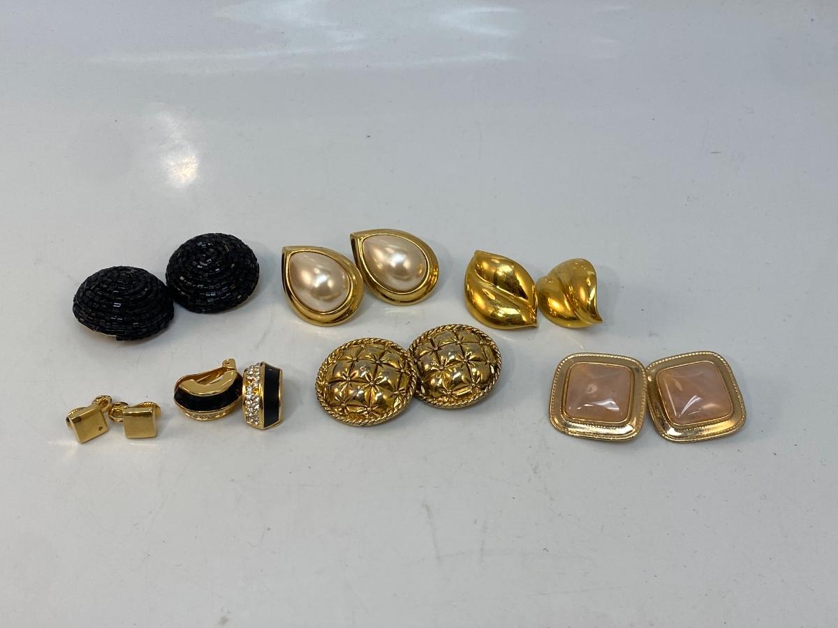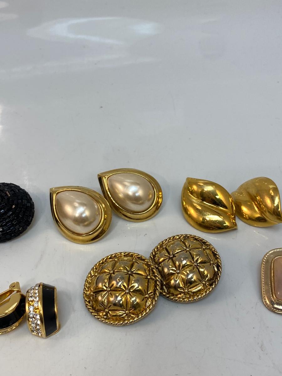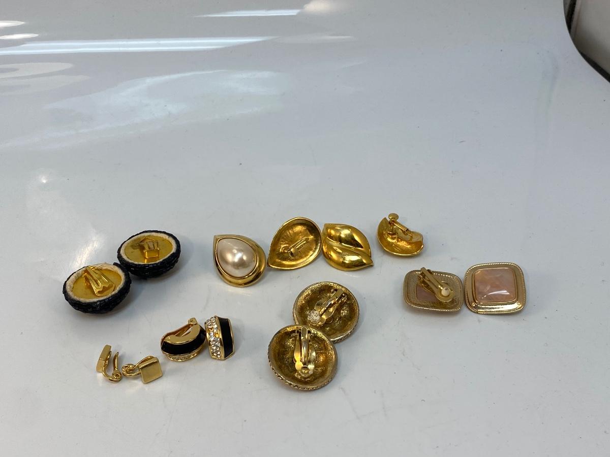 Lot of Gold Tone Fashion Costume Clip Style Earrings 7 Pairs. All fashion earrings no gold marks found. A couple pairs are from Napier.
