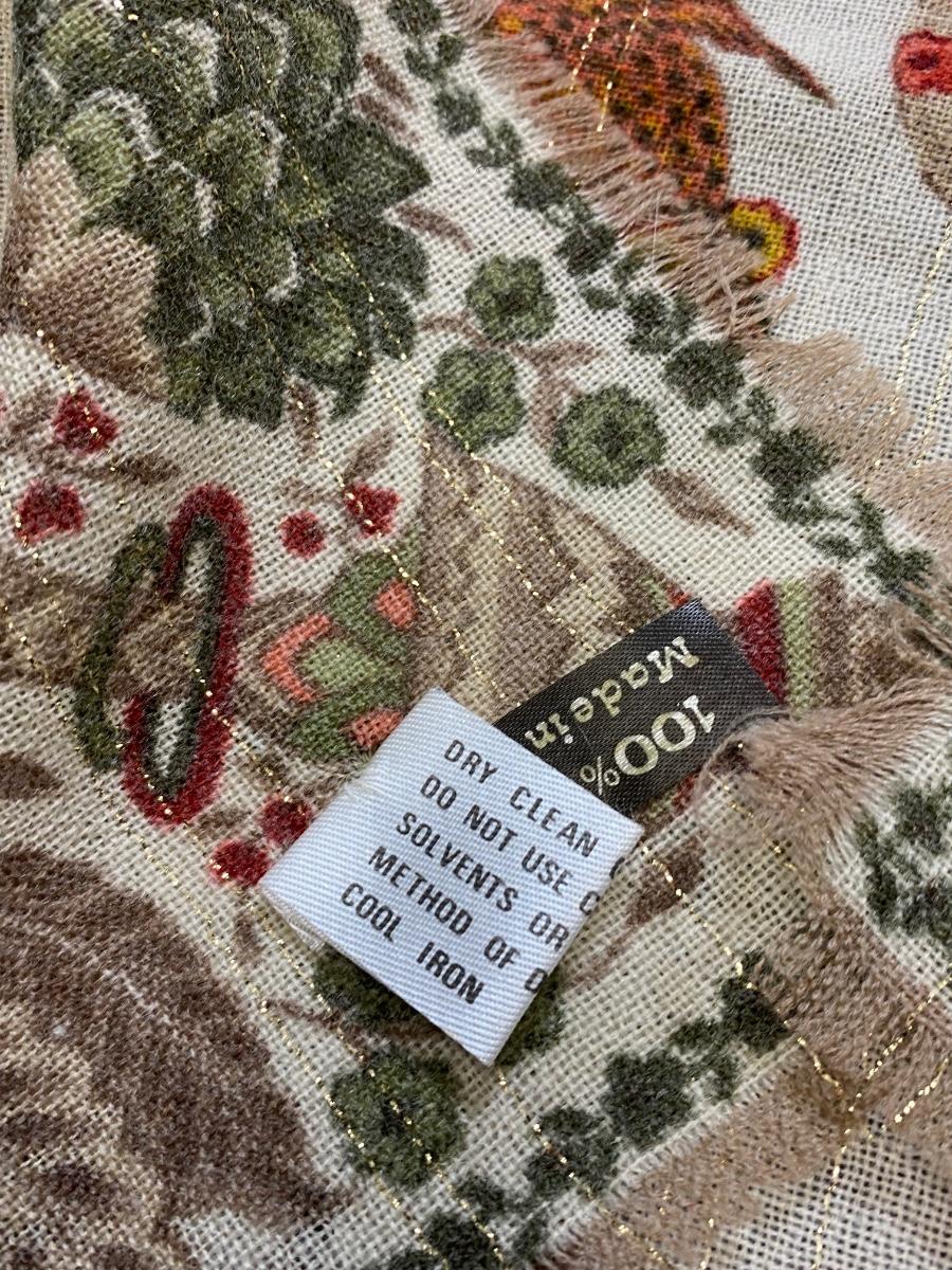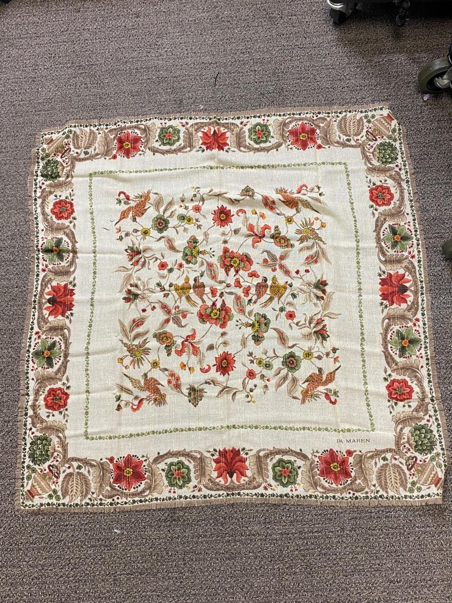 Vintage Da Maren 100% Wool Fringed Edge Floral & Birds Pattern Scarf Made in Italy. In very good vintage condition. No spots or stains. Beautiful pattern design. Large, about 33" square.