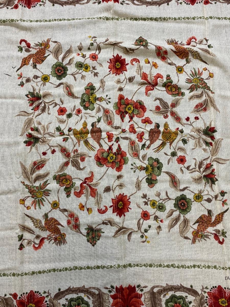 Vintage Da Maren 100% Wool Fringed Edge Floral & Birds Pattern Scarf Made in Italy