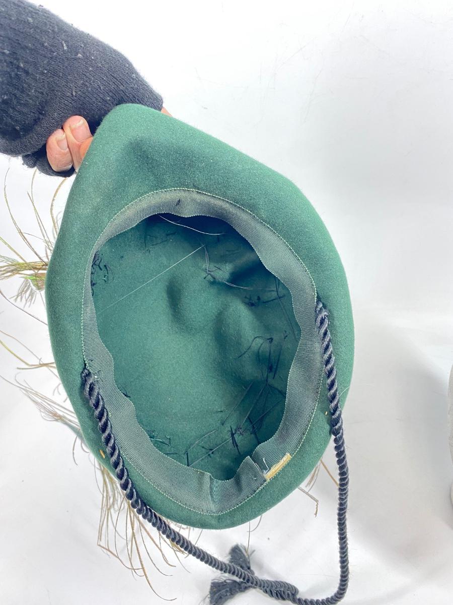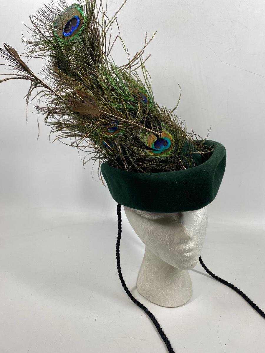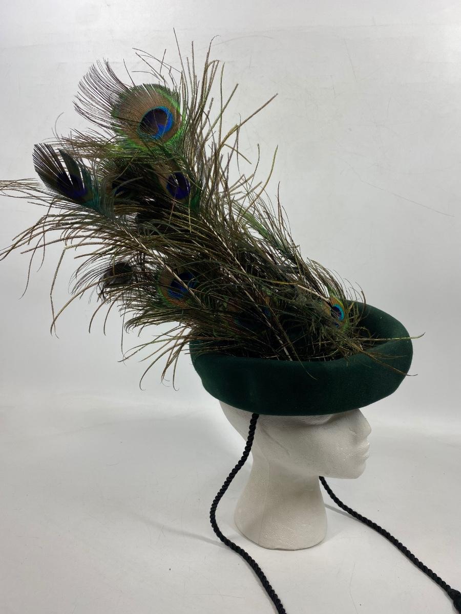 Vintage Green Peter Pan Style Hat with Peacock Feathers