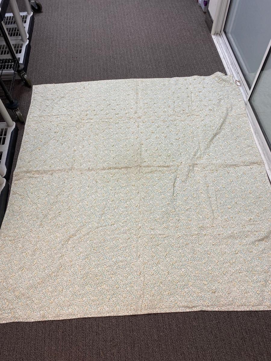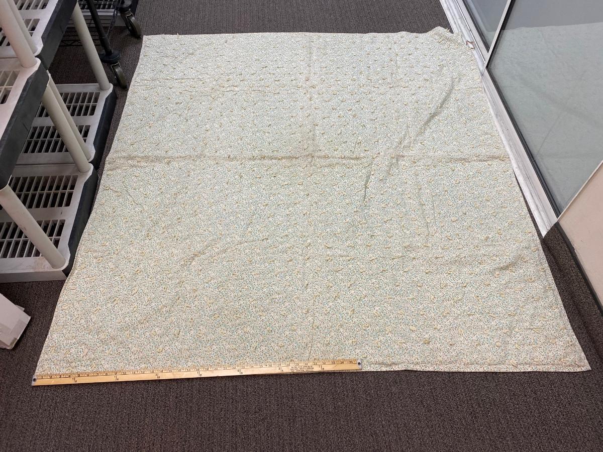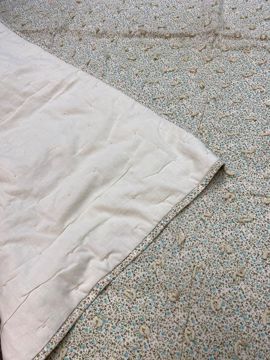 Vintage Tiny Blue Flower Floral Print Quilt Blanket Throw. Light discoloration fromage. Good throw blanket or on a childs bed. About 5' square.