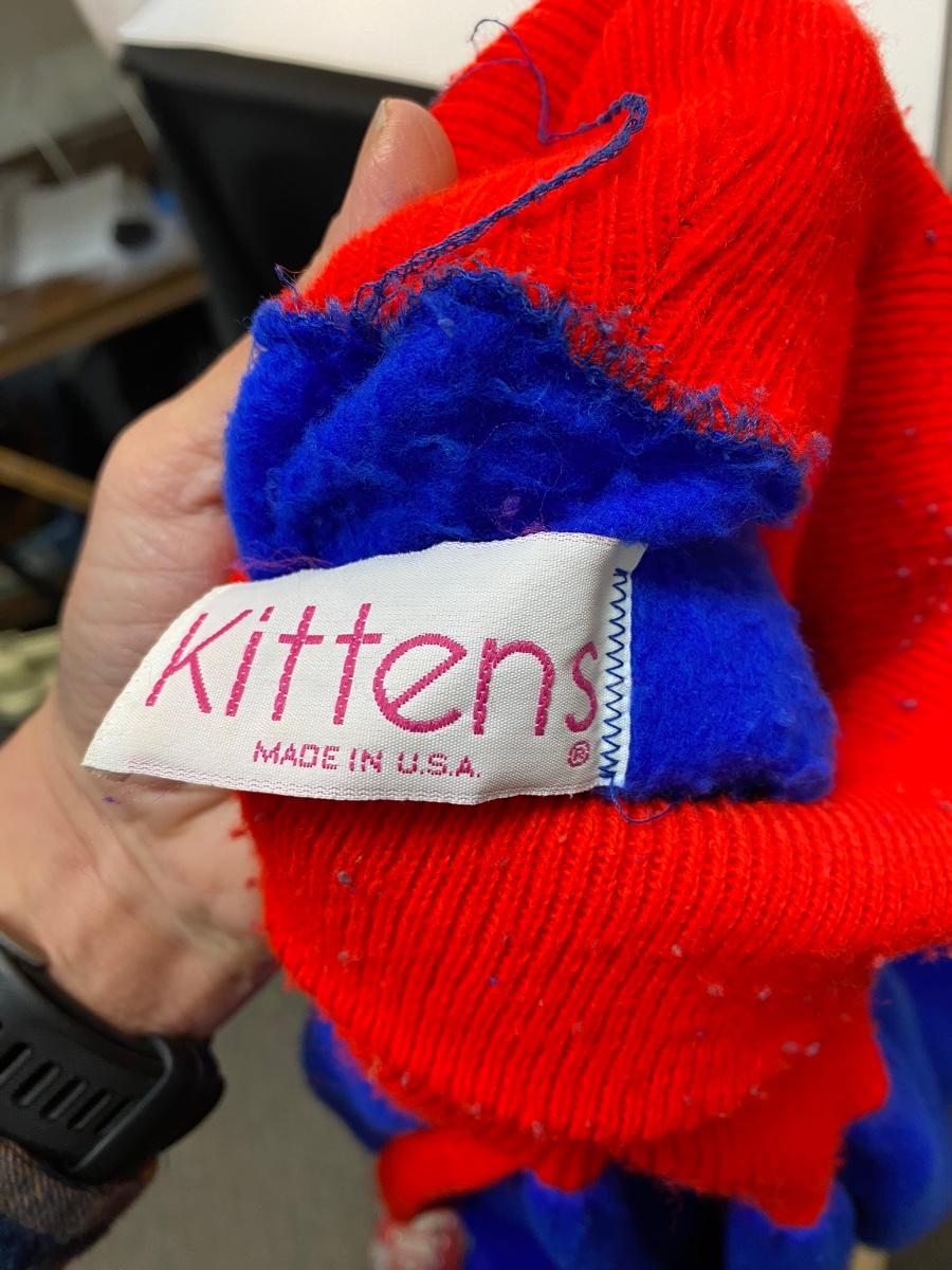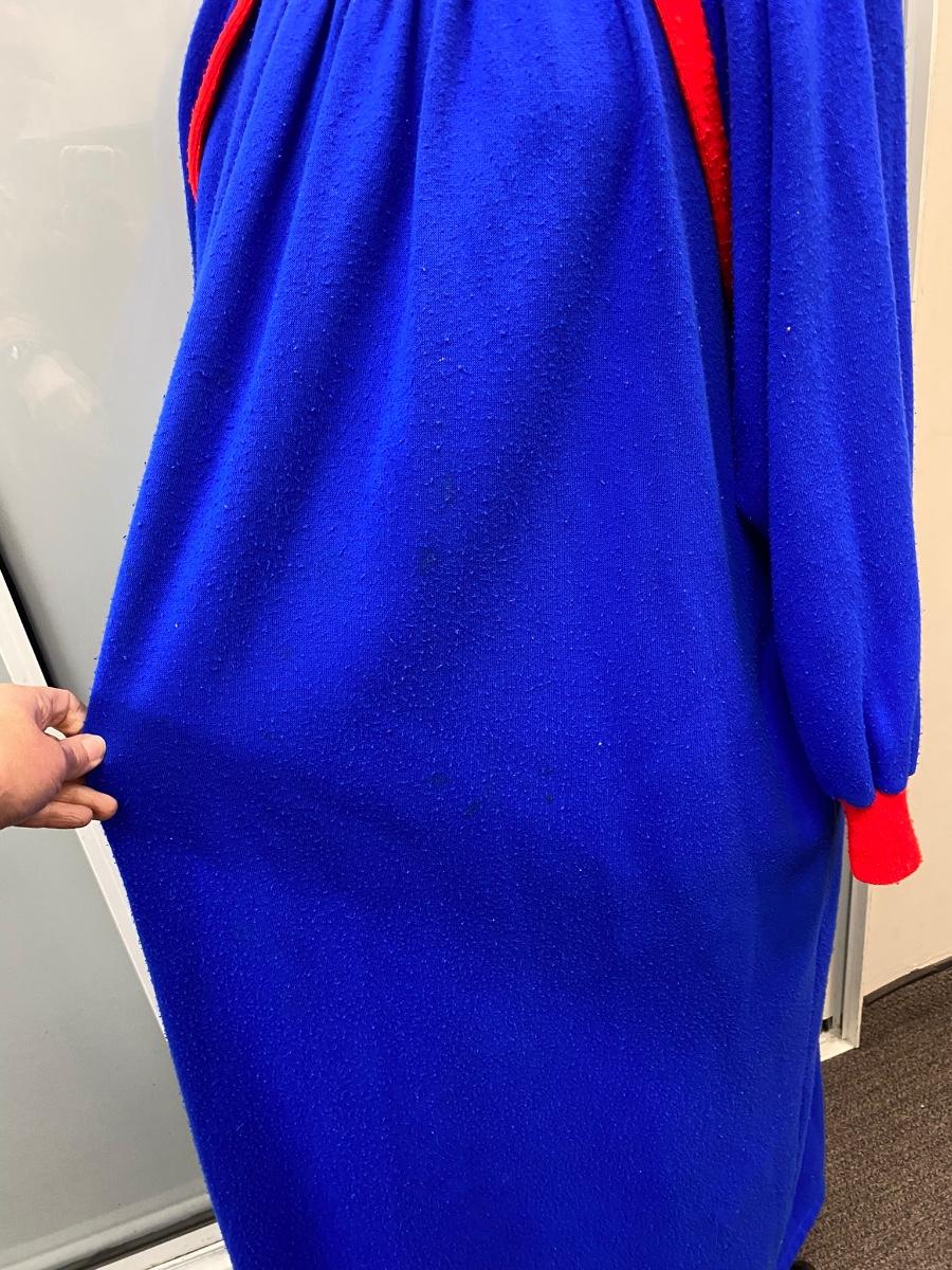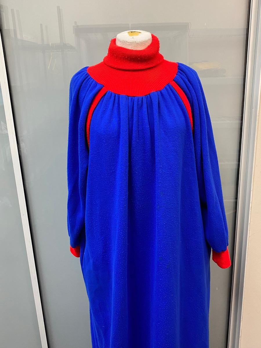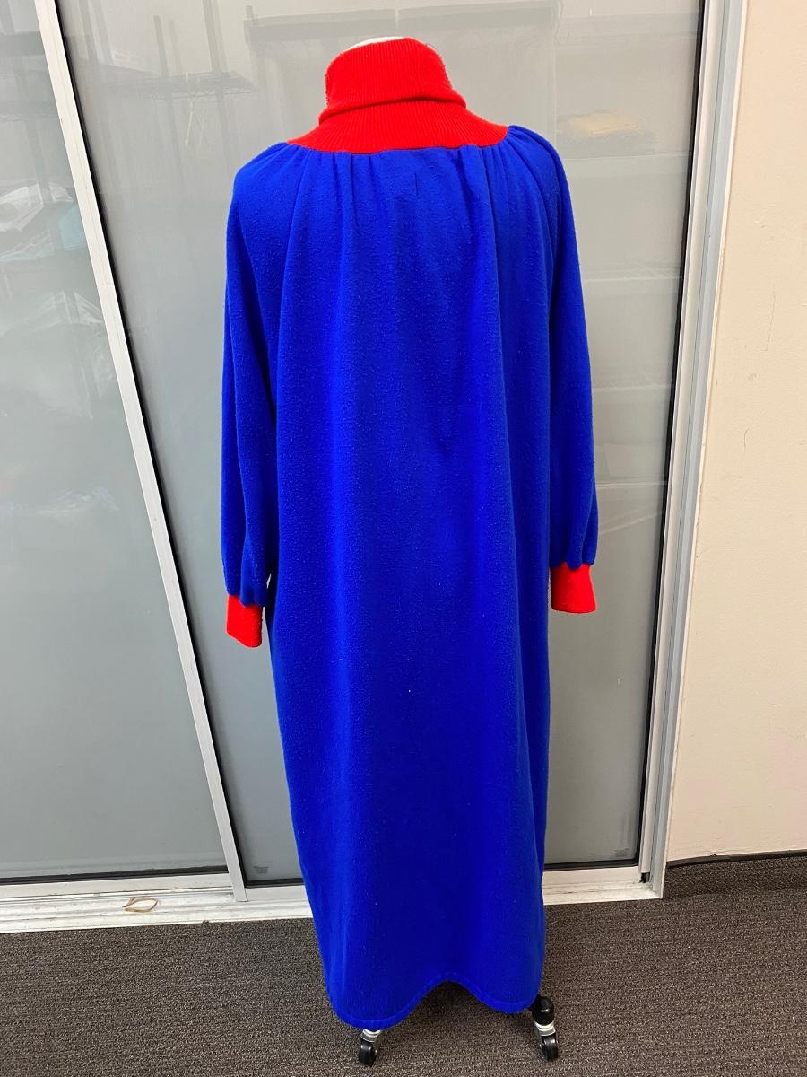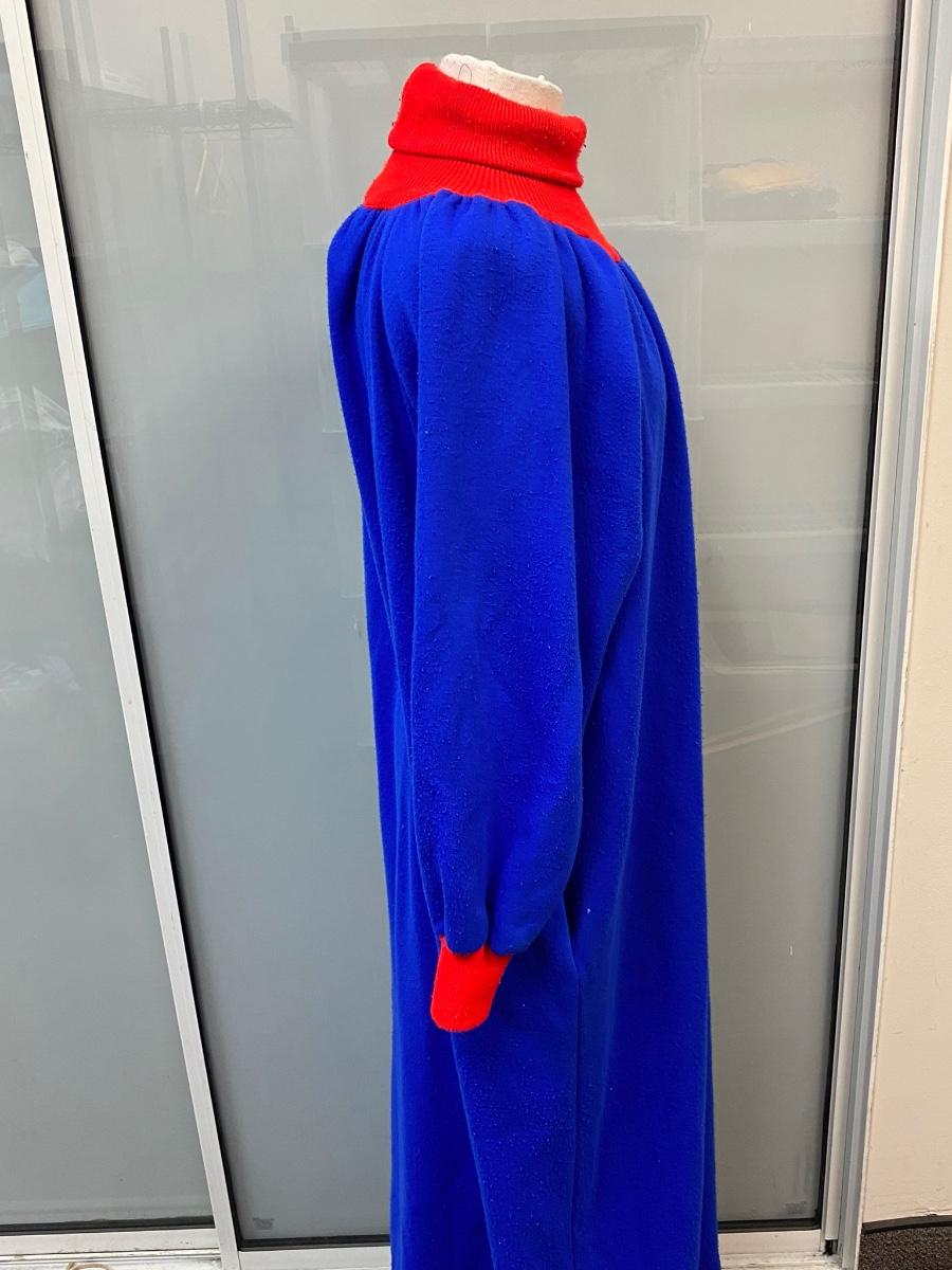 Vintage Retro Kittens Bright Blue & Red Fleece Nightgown Kaftan Loungewear. In good worn condition. May have light spots, some pilling to fabric. No major damage or stains. Guessing size medium/large.