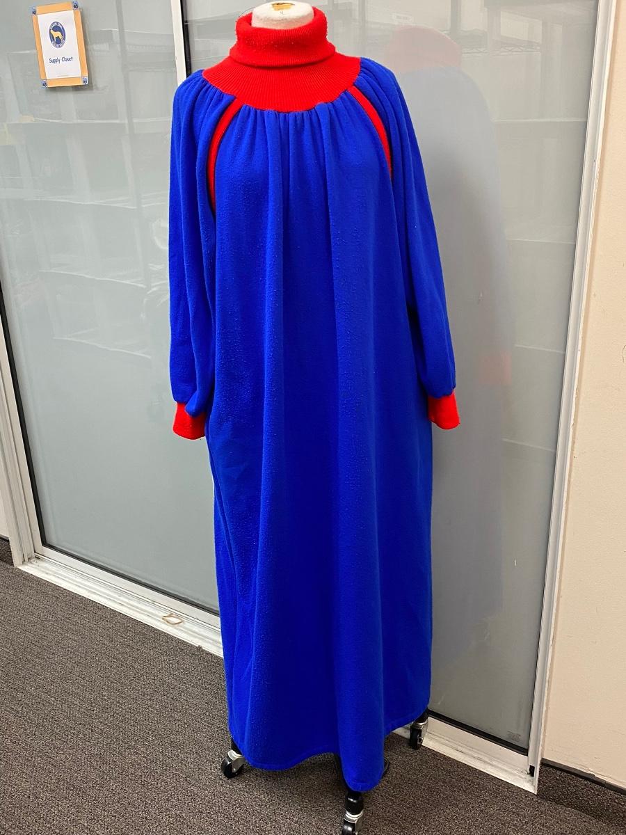 Vintage Retro Kittens Bright Blue & Red Fleece Nightgown Kaftan Loungewear