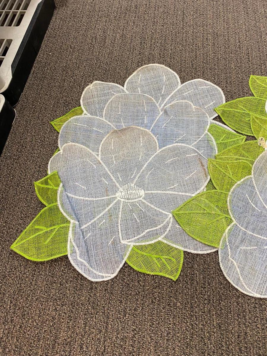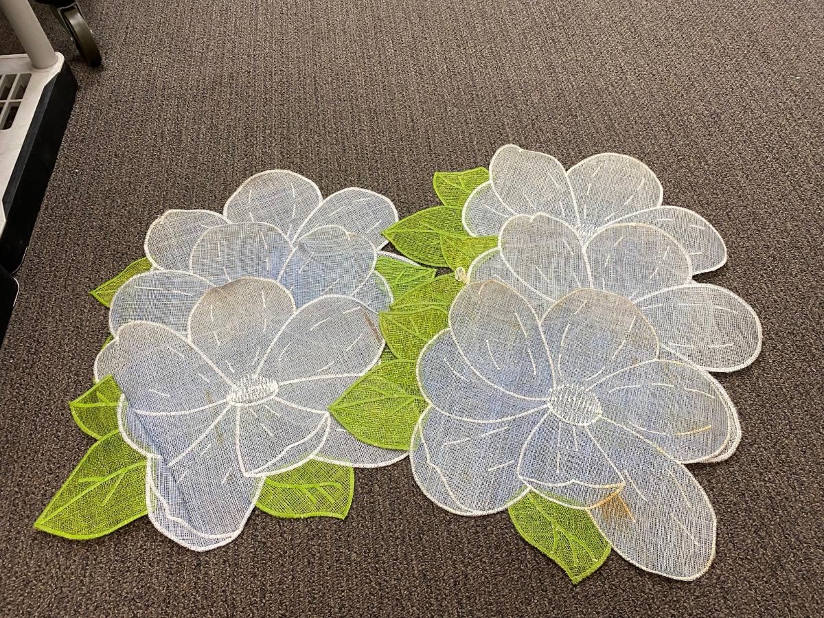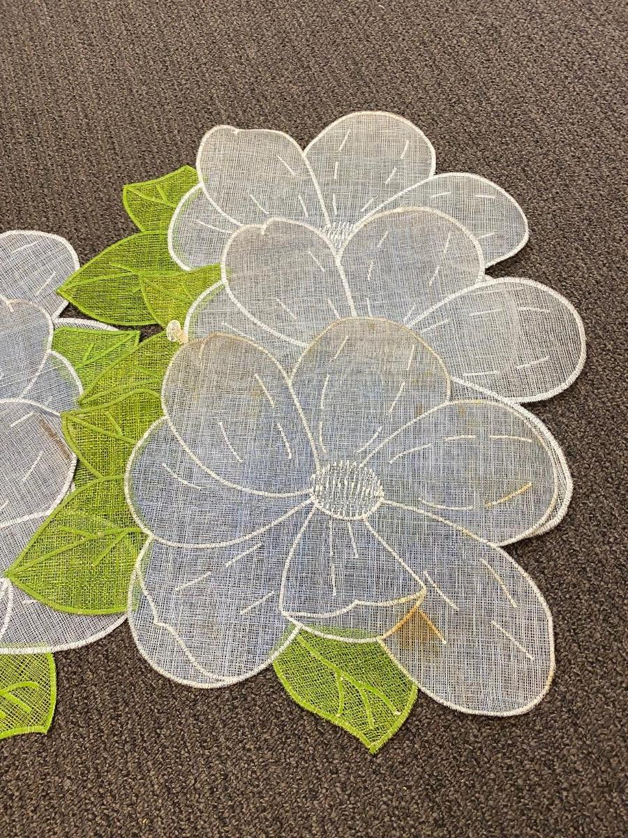 Vintage Fiber Home Decor Fedco Green Foliage & White Flower Placemats
