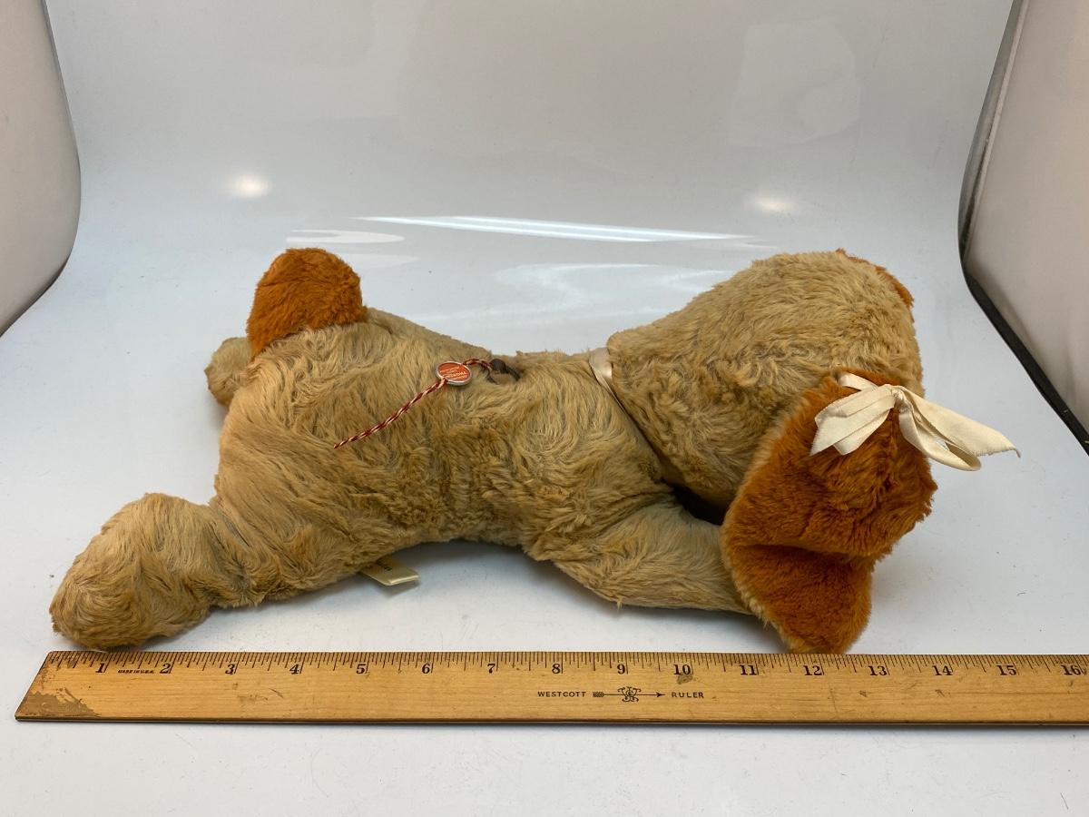 Vintage Master Industry Genuine Thorens Swiss Music Work Music Box Stuffed Dog Animal