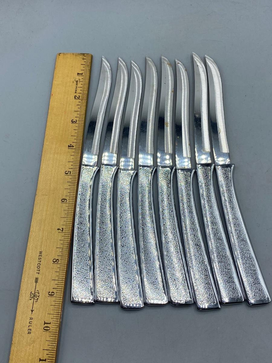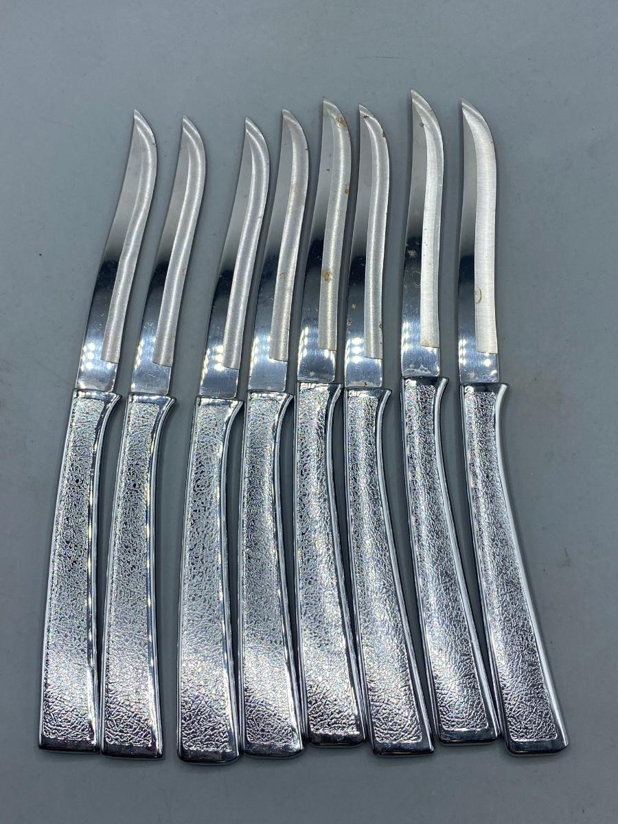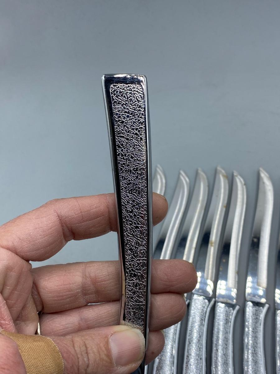 Vintage Mid Century Carvel Hall Stainless Steel Steak Knife Cutlery Set. Textured handle. In good previously used condition.
