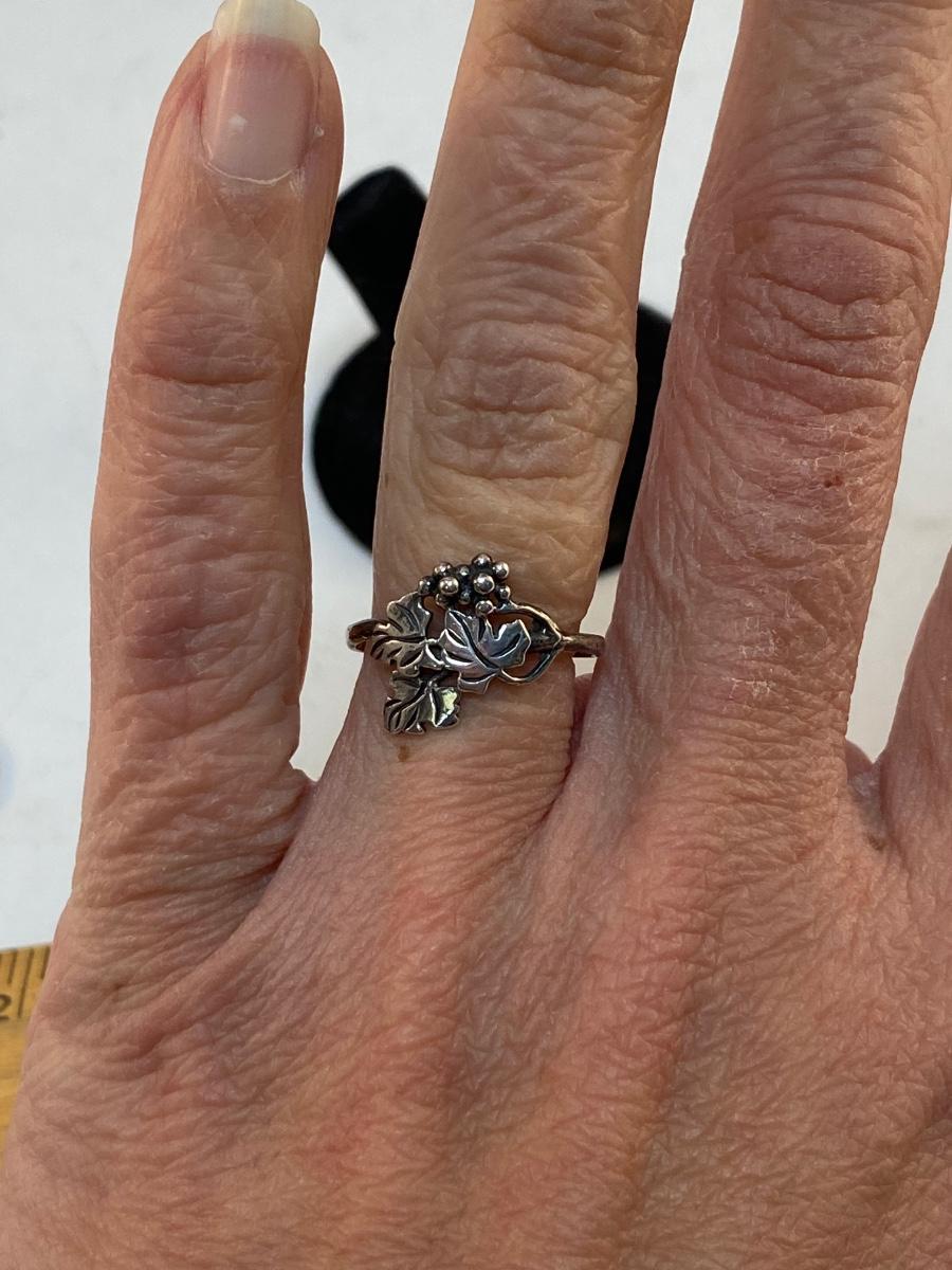 Sterling Silver 925 Grapevine Leaves & Fruit Wine Lovers Fashion Ring. Stamped 925 inside, hard to make out but photo'd. Size 6/7.