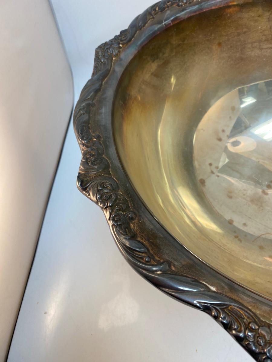 Large Rogers Bros Vintage Silver Plate Punch Serving Bowl Heritage Pattern Floral Edge