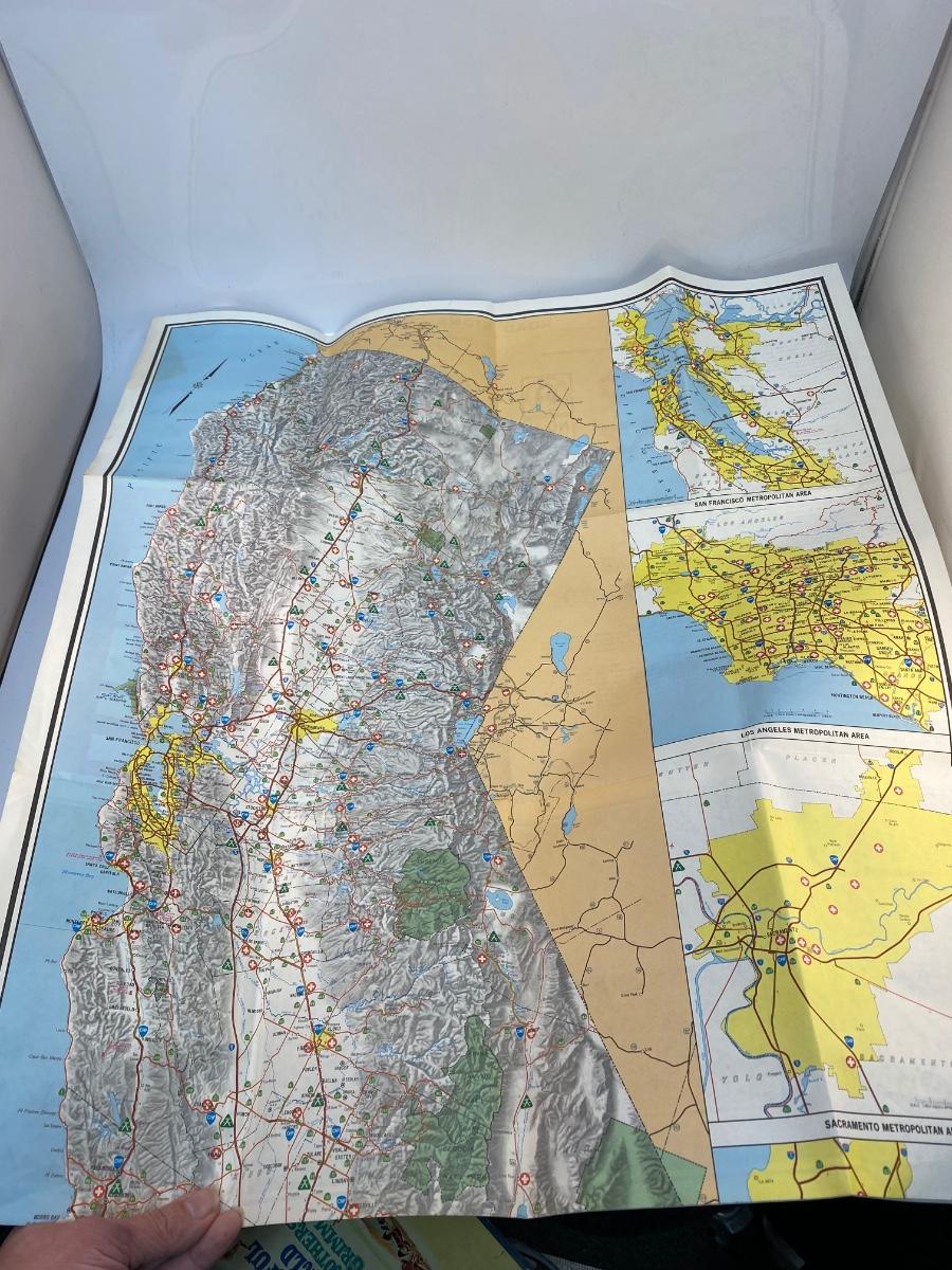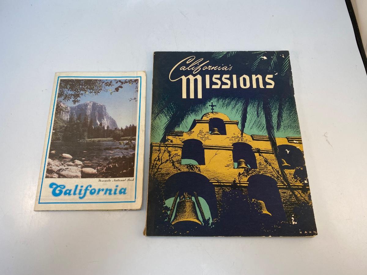 Vintage Fold Out Paper Map of California and a Missions Guide Reference Book. Both in good vintage condition.