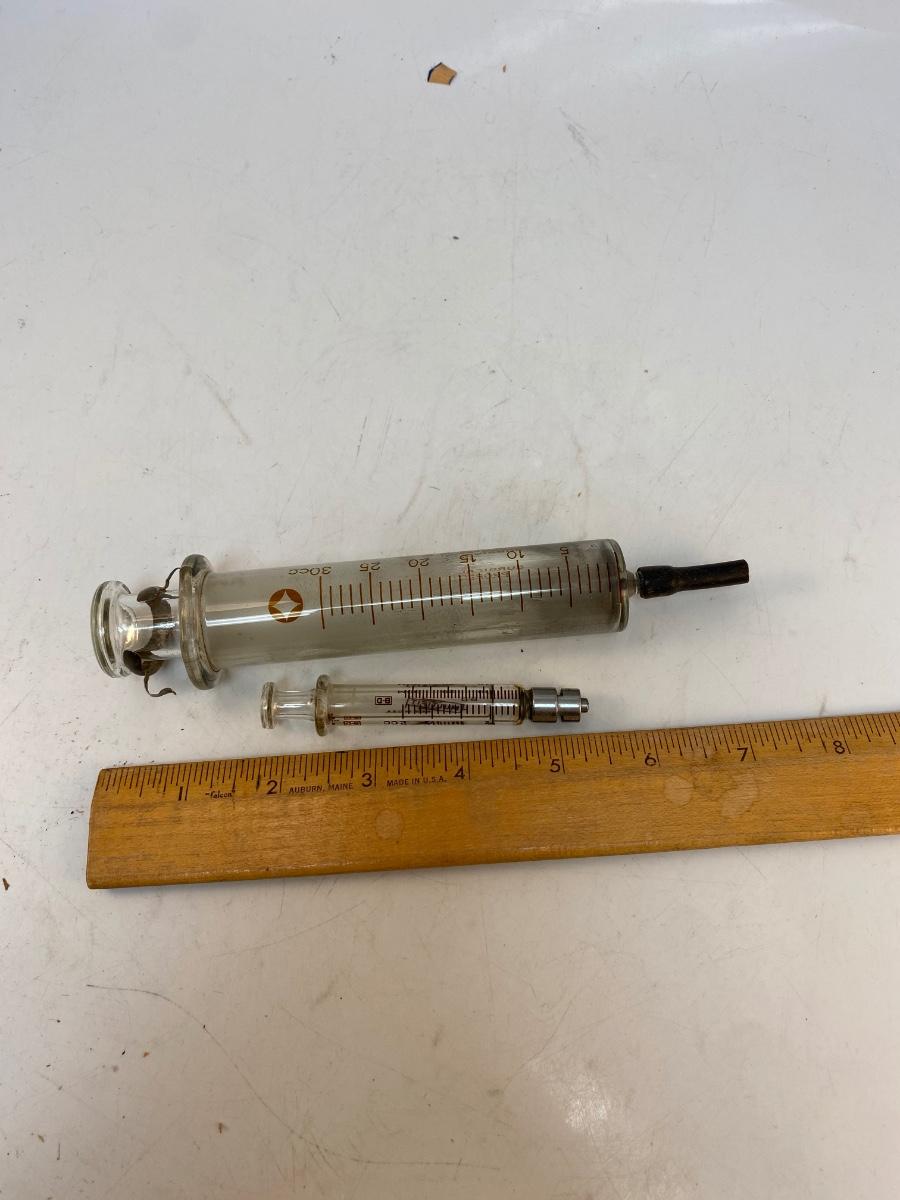 Pair of Vintage Glass Syringes No Needles 30cc 2cc