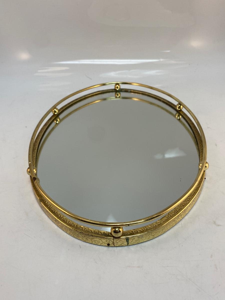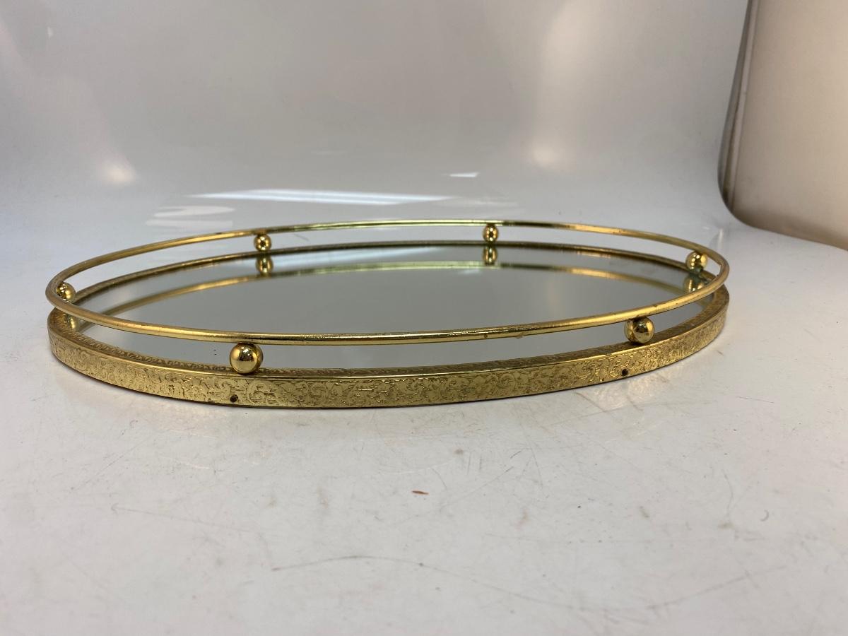 Vintage Oval Gold Tone Metal Vanity Dresser Perfume Trinket Tray