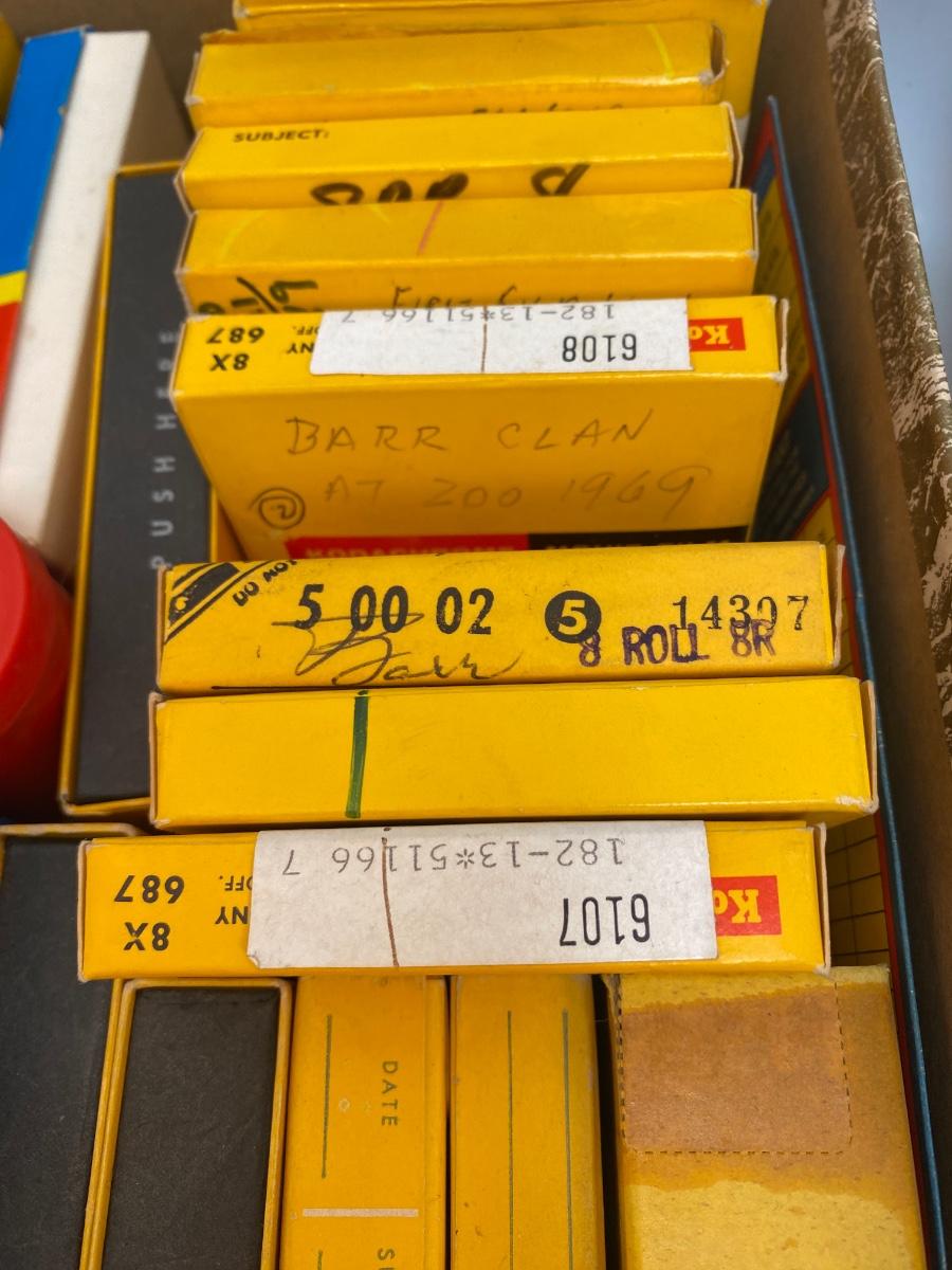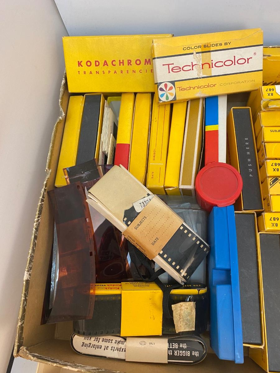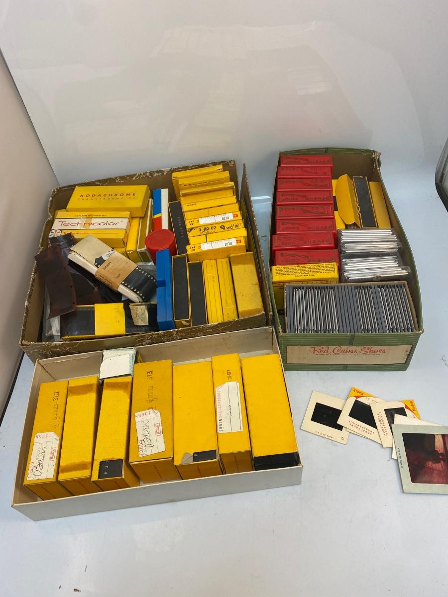 Mixed Lot of Colored Slides & 8mm Film Reels 1950s 1960s Family Vacation Holiday. Some of the boxes have descriptions on them. See photos for idea of everything included. Mixed subjects. Seem to be mostly from the 1960s.