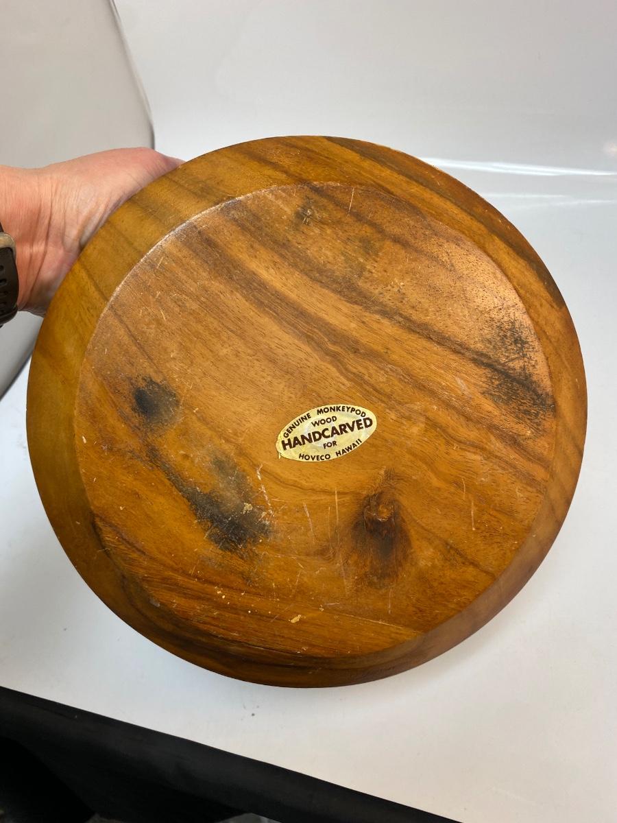 Vintage Retro Hawaii Carved Monkeypod Fruit Serving Console Bowl. In good retro condition. 9" diameter.