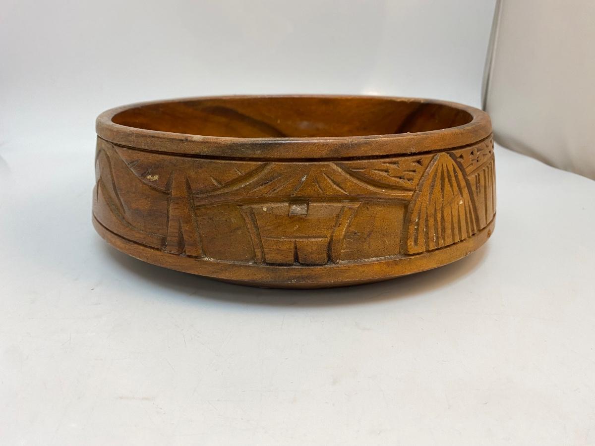 Vintage Retro Hawaii Carved Monkeypod Fruit Serving Console Bowl
