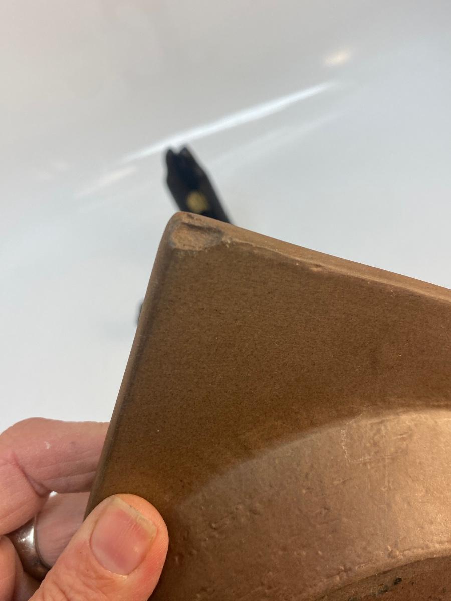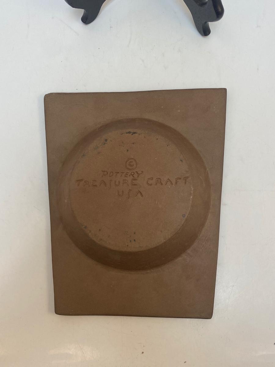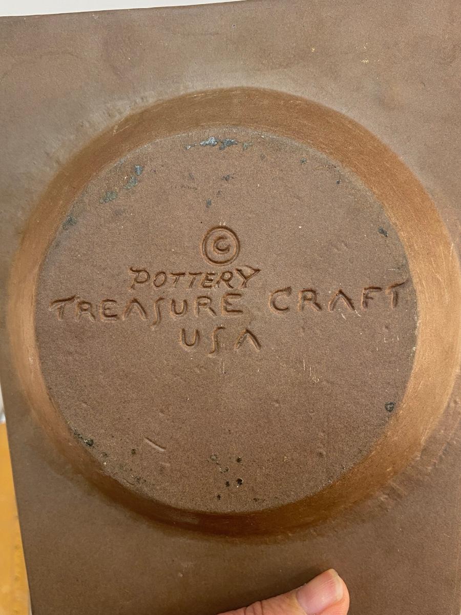 Vintage Midcentury Treasure Craft Pottery Trinket Dish Change Holder Ashtray. In good vintage condition. There does look to be a chip in corner, but it looks like a maker flaw more than damage.