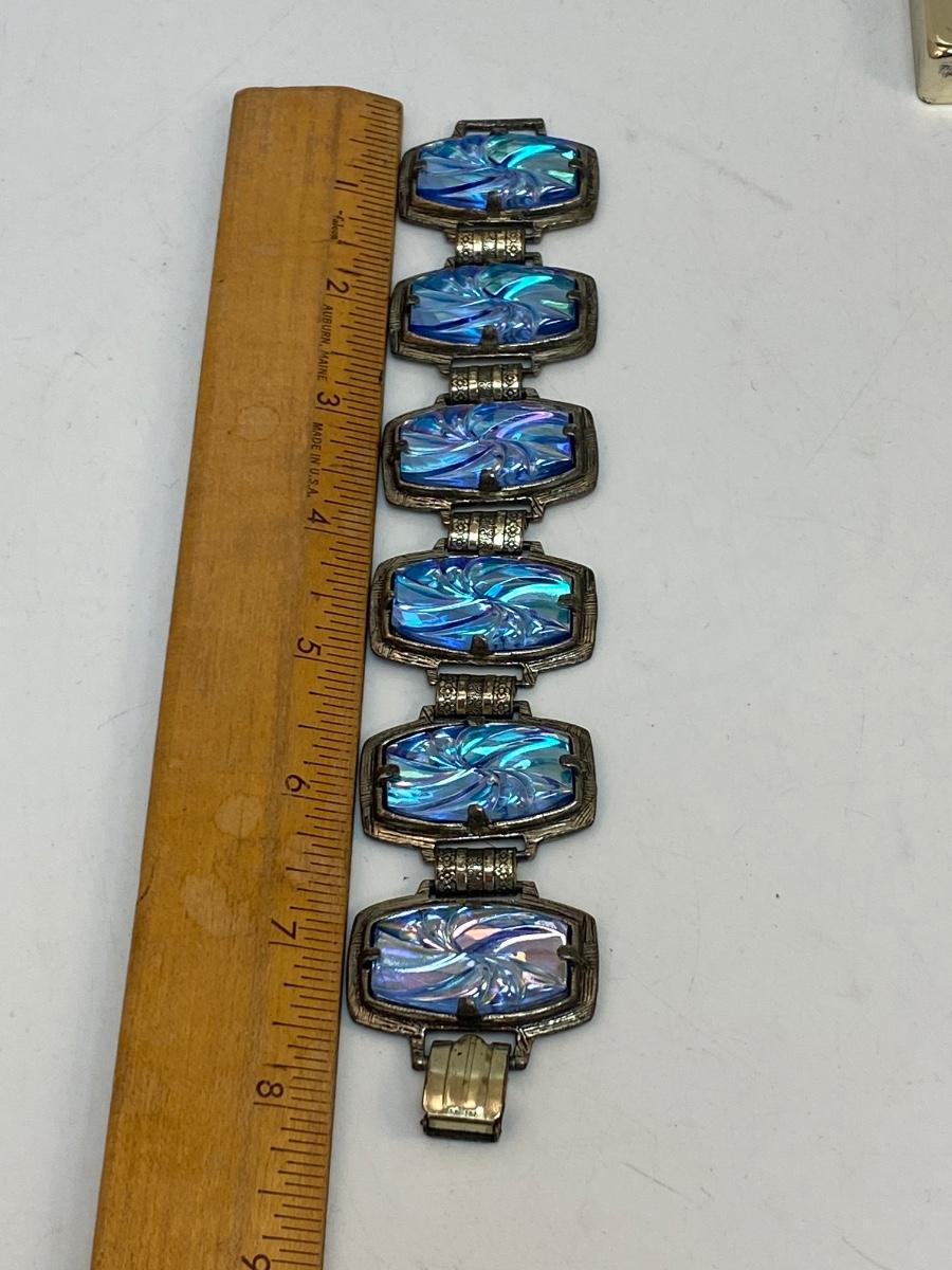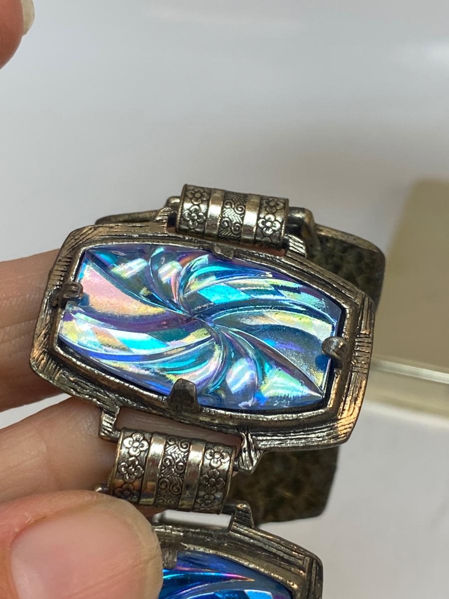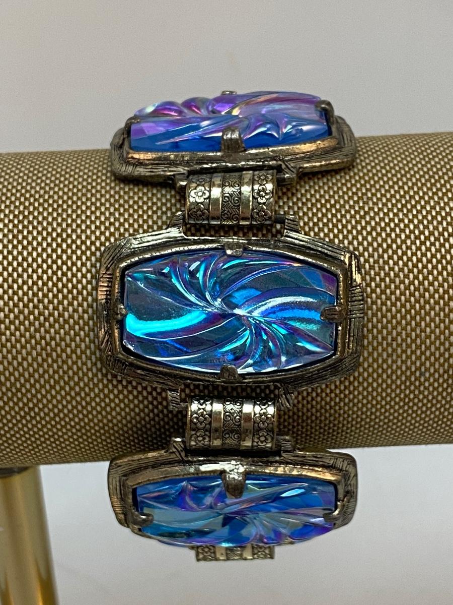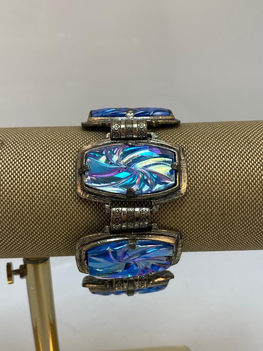 Vintage Chunky Pressed AB Blue Purple Swirl Medallion Bracelet