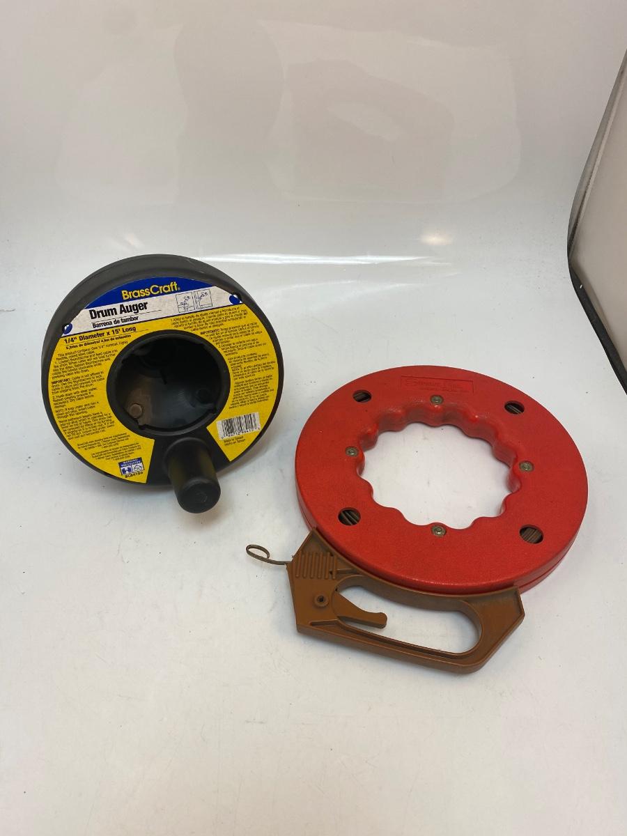 15' Drum Auger & Fish Tape for pulling electrical wiring in walls. Both are in good used condition.