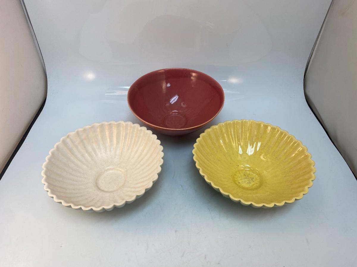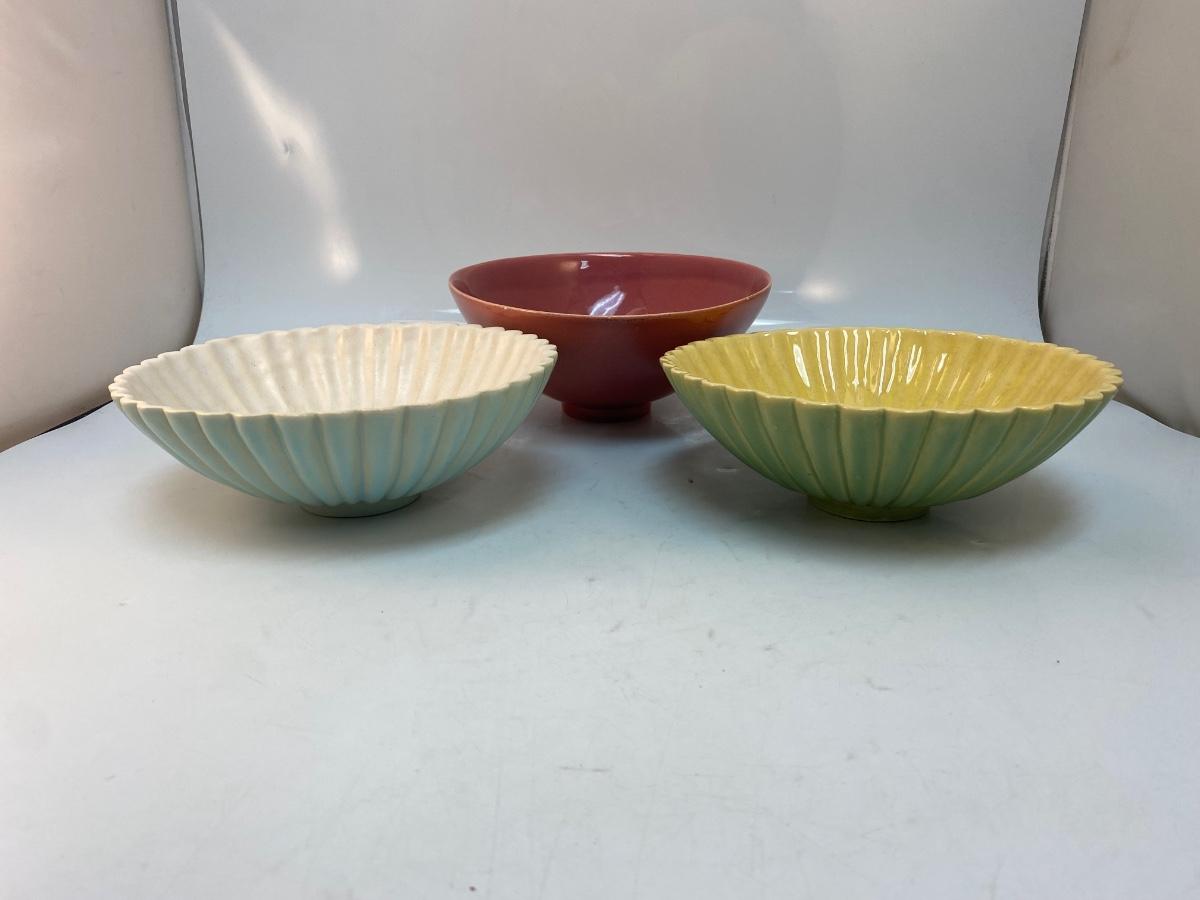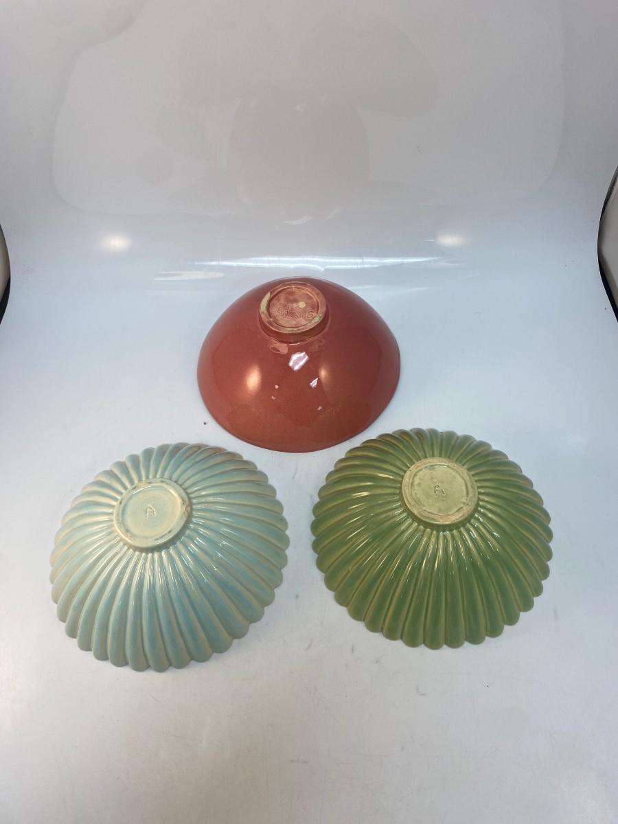 Lot of Three Vintage California Pottery Bowls Ceramic Fluted