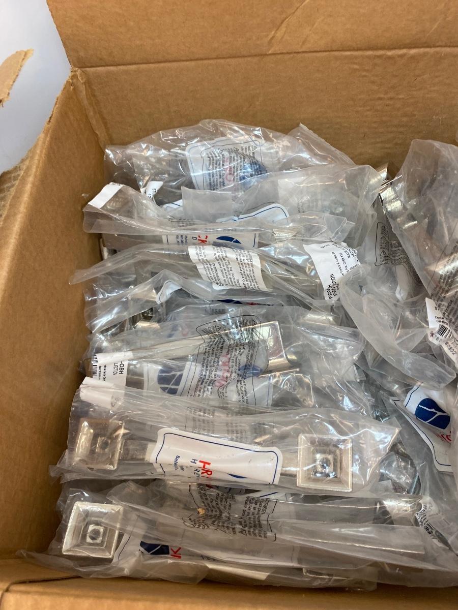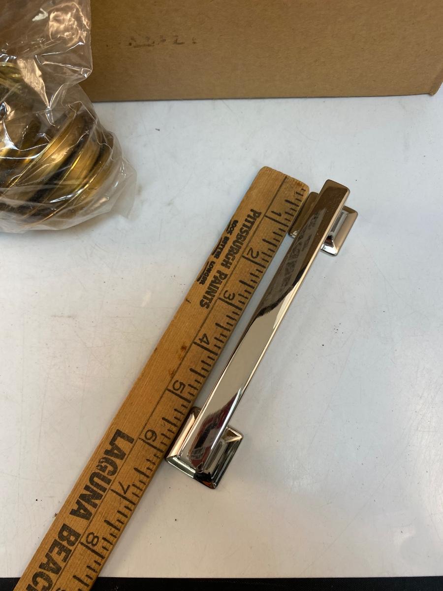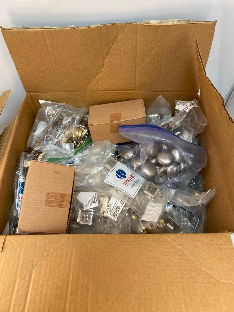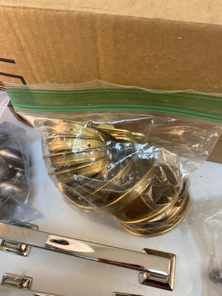 Huge Lot of New Drawer Door Pulls Shiny Chrome & Miscellaneous Knobs. Majority of the drawer pulls are chrome handles about 6" size. There is probably 2 dozen or more. There is some single knobs and other drawer pulls from Pottery Barn. Some knobs are previously used. Heavy box.