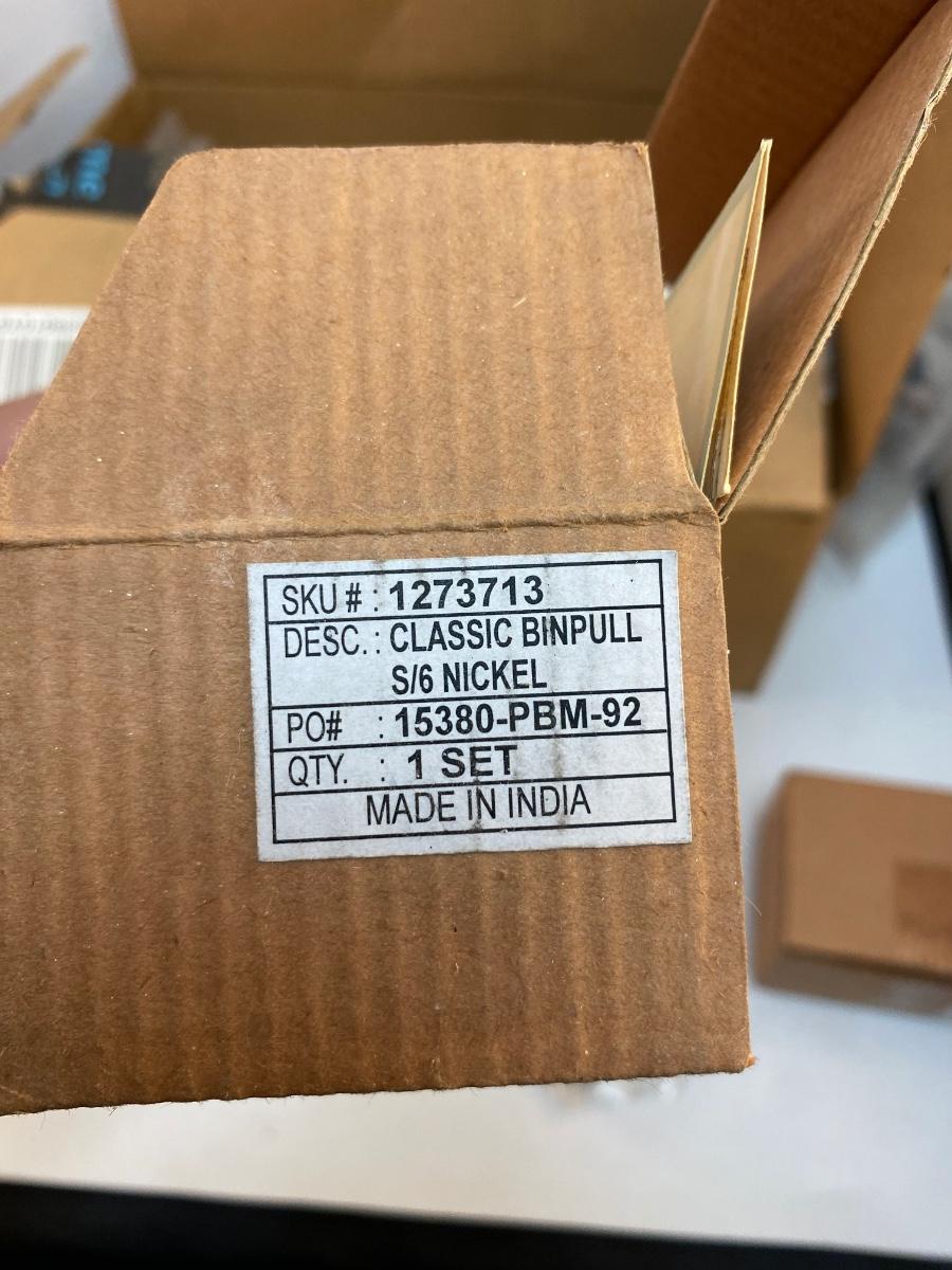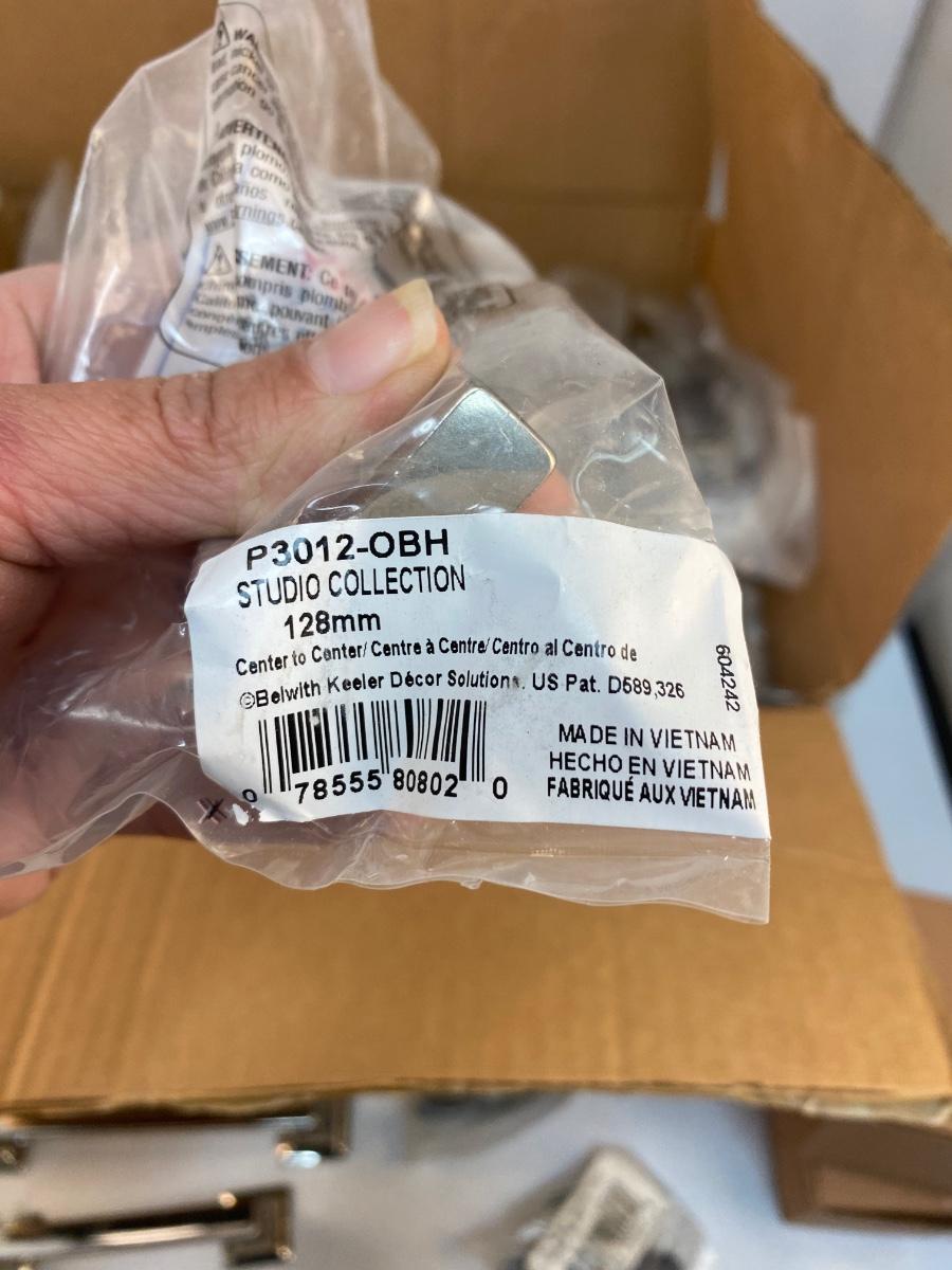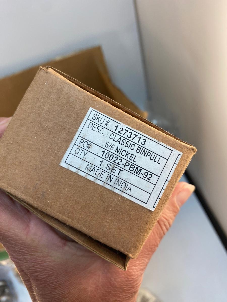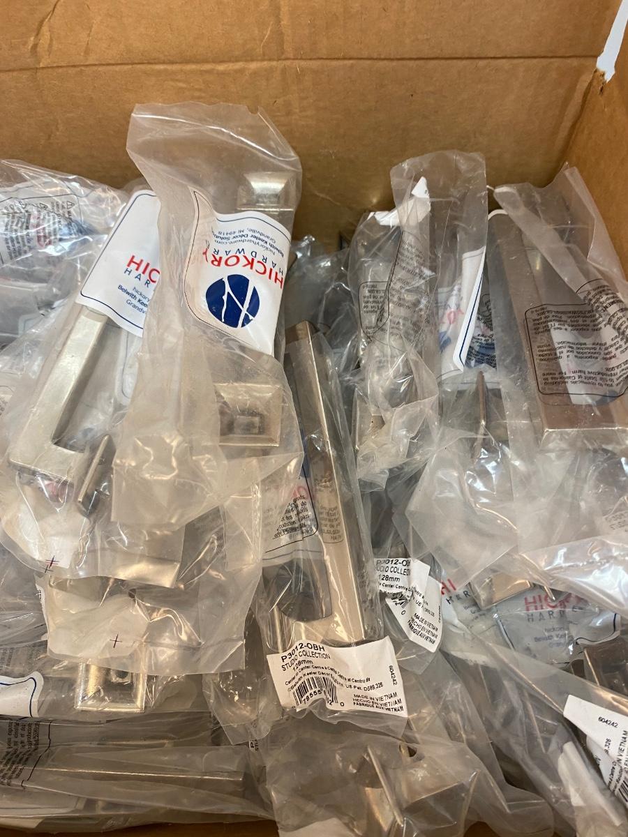 Huge Lot of New Drawer Door Pulls Shiny Chrome & Miscellaneous Knobs. Majority of the drawer pulls are chrome handles about 6" size. There is probably 2 dozen or more. There is some single knobs and other drawer pulls from Pottery Barn. Some knobs are previously used. Heavy box.