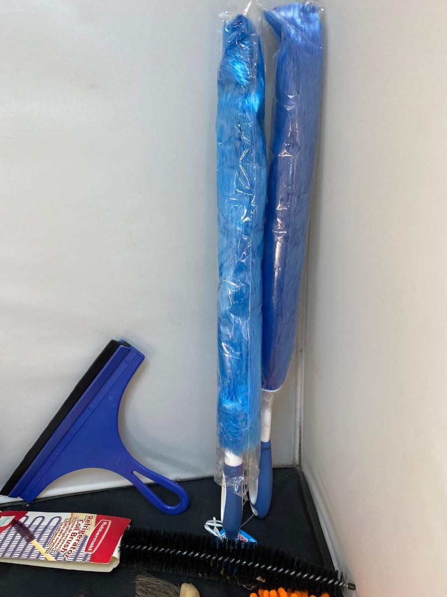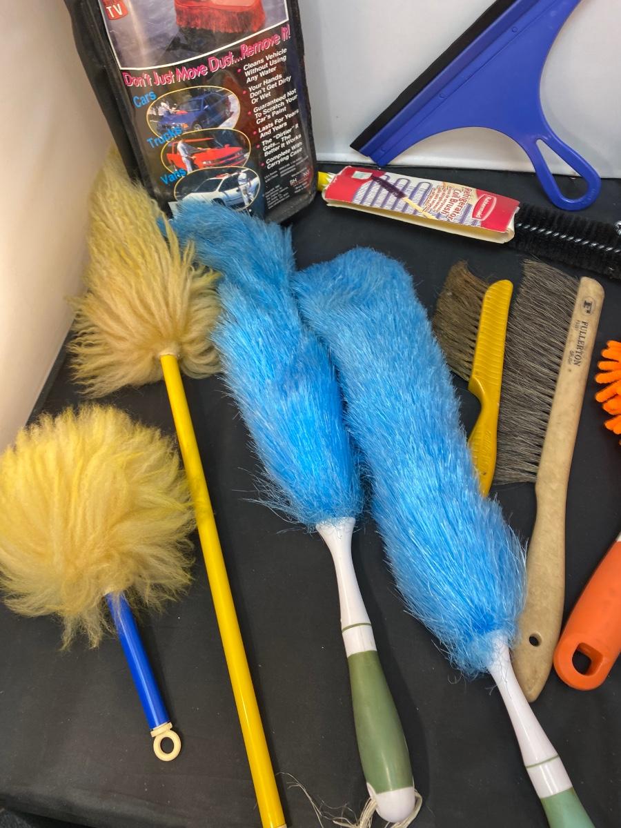 Mixed Variety Lot Dusters Brushes Microfiber Squeegee. Various types, in good condition, some new.