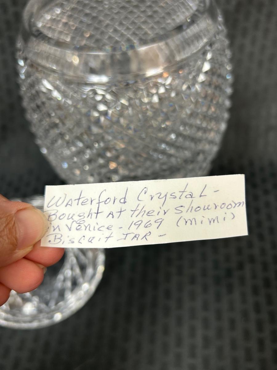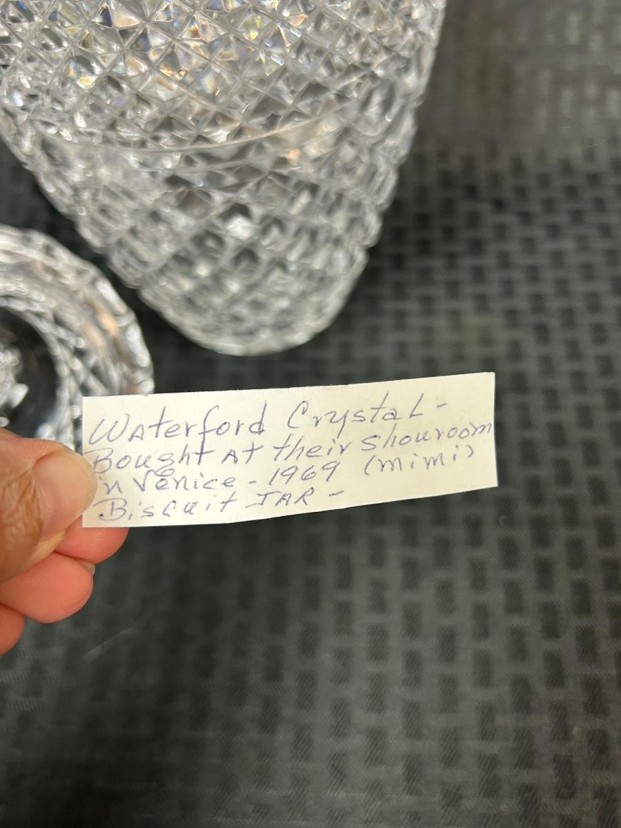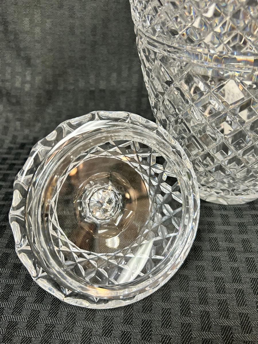 Large Vintage Waterford Crystal Biscuit Jar Urn Diamond Pattern. In good condition. Could not find a Waterford mark on the piece, going of note that was stuck inside by previous owner. It does look like good quality crystal.