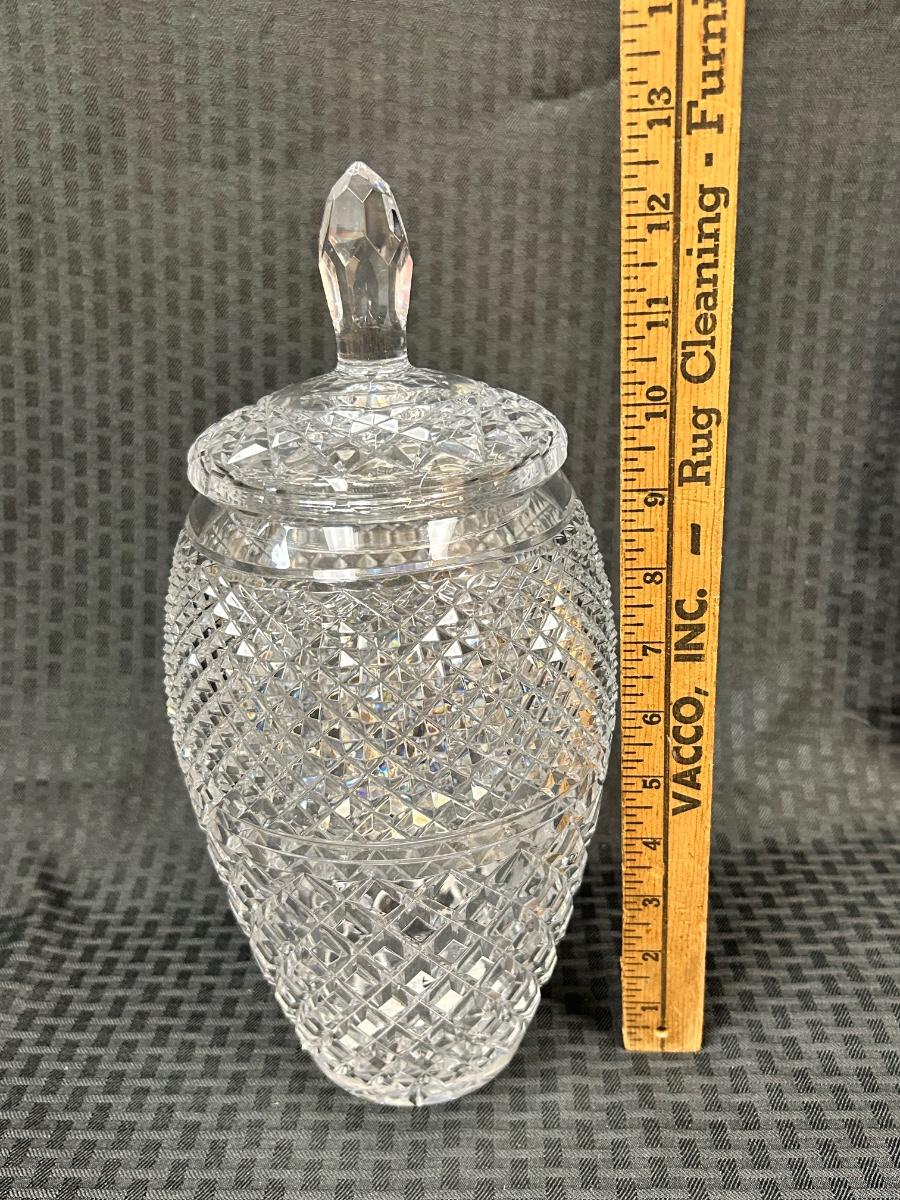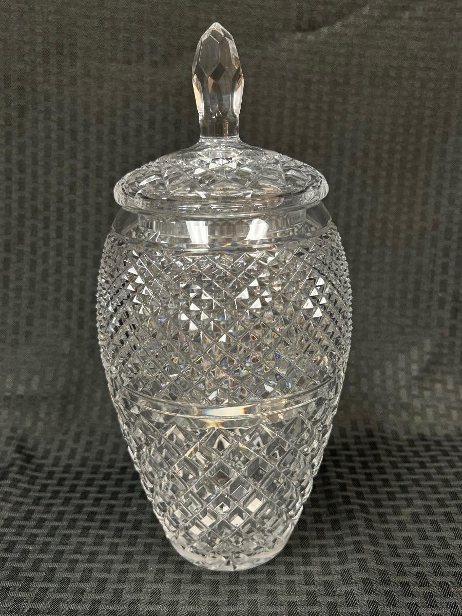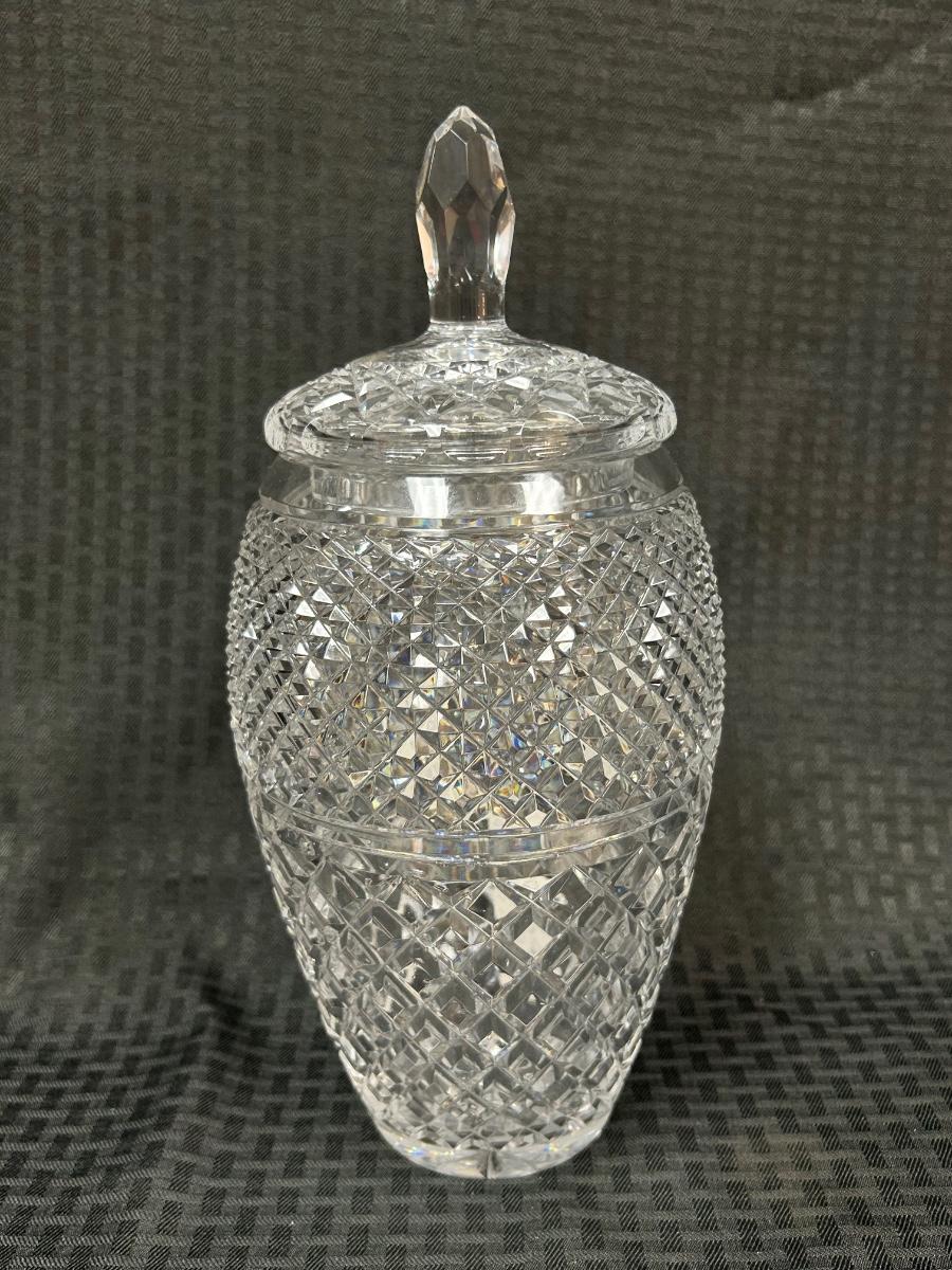 Large Vintage Waterford Crystal Biscuit Covered Jar Urn Diamond Pattern Ginger Jar