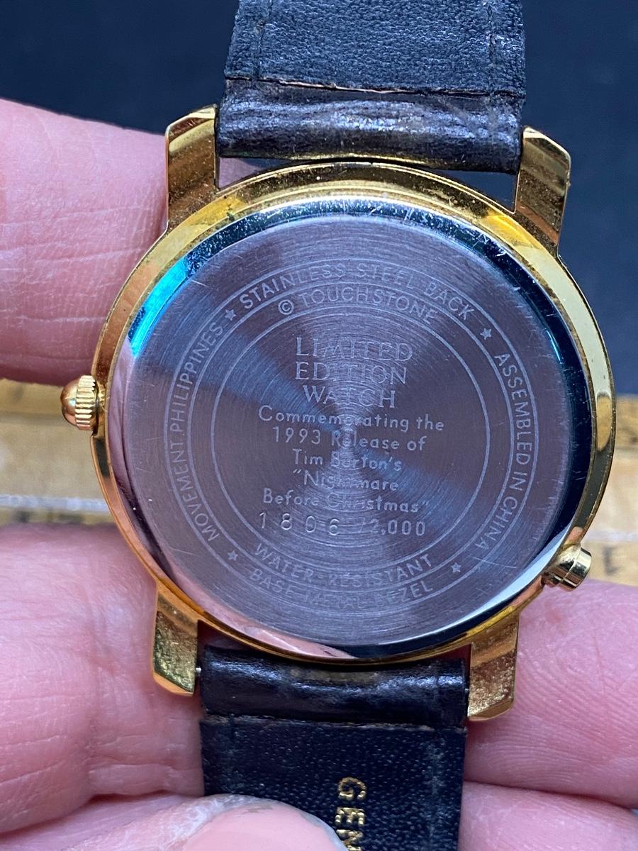 Limited edition Nightmare before Christmas Jack Skellington watch. Comes in original coffin shaped box. Previously worn but in good condition. Not running currently, probably needs a new battery. #1806/2000.