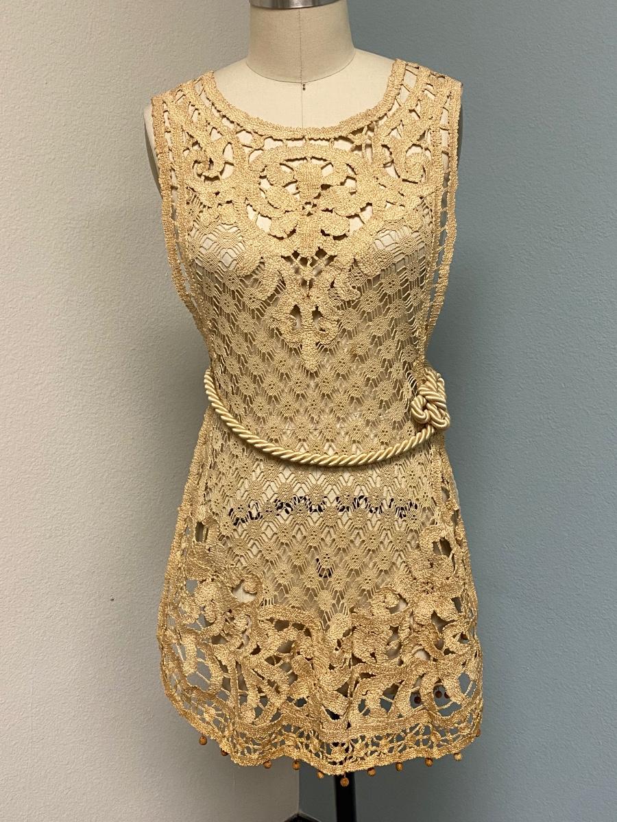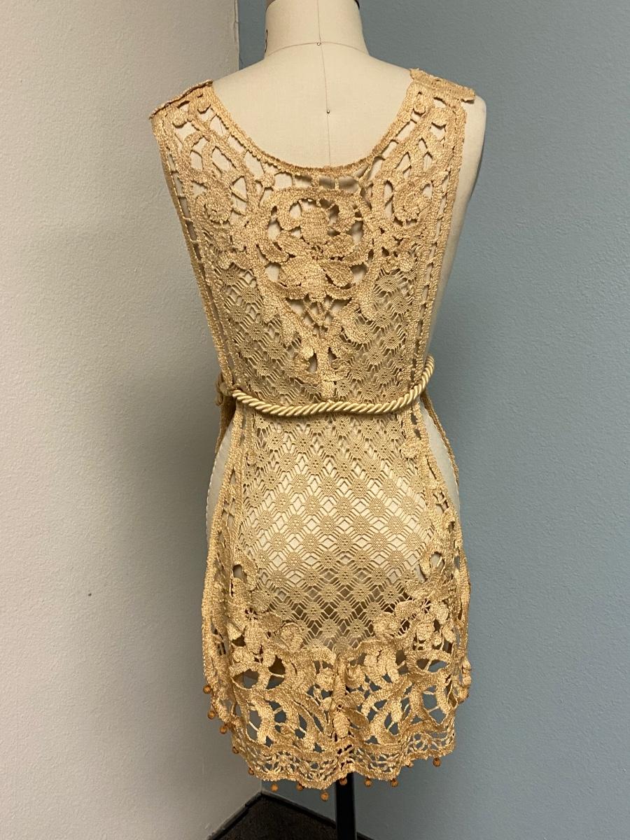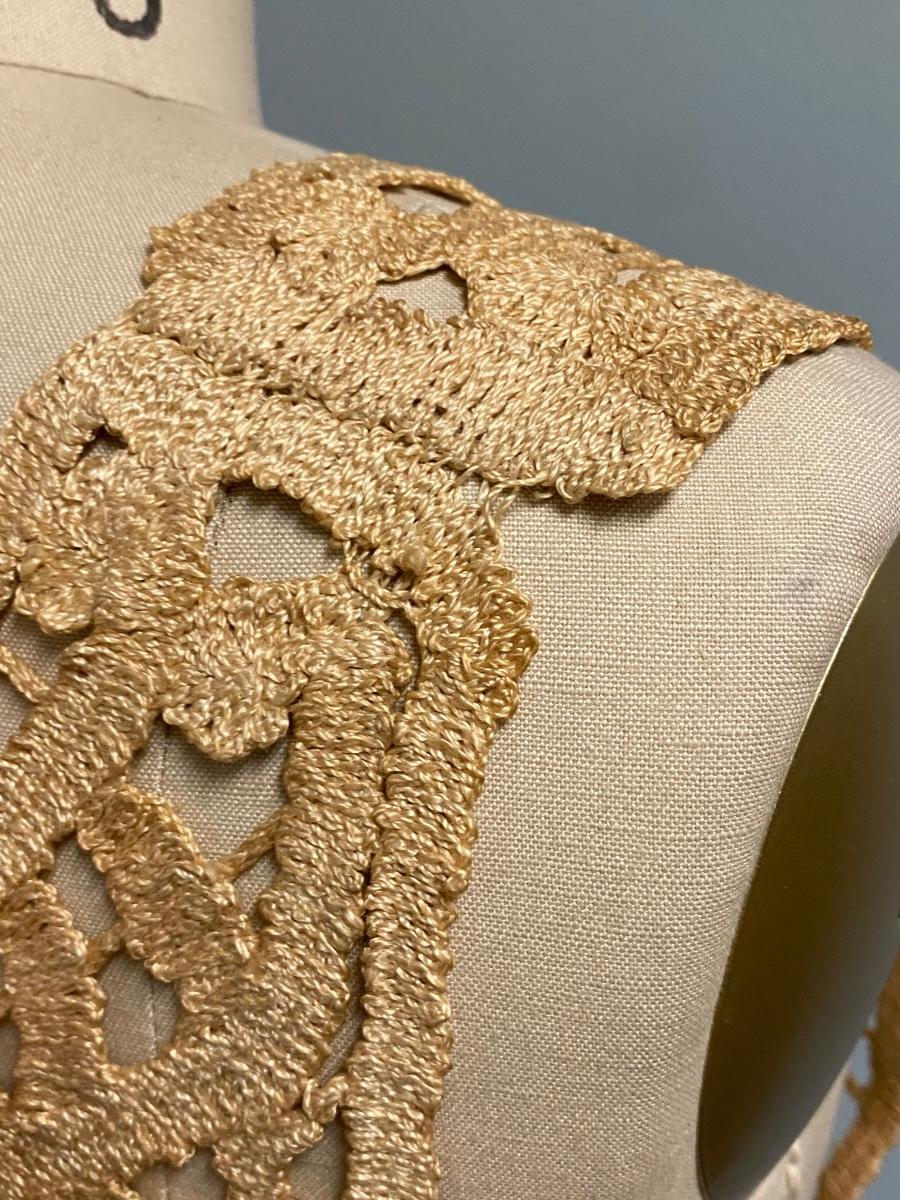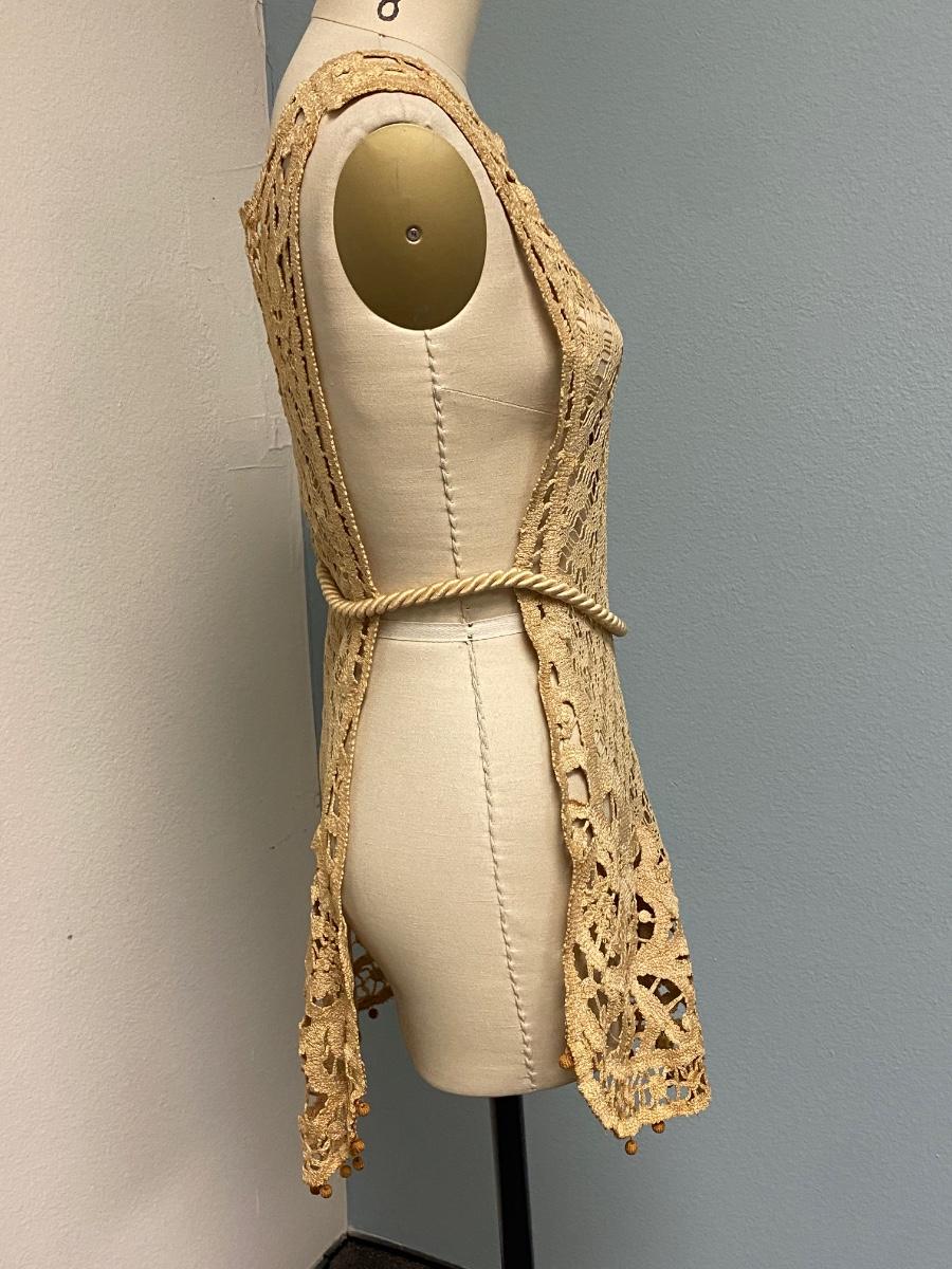 Vintage Antique Victorian 1920s Heavy Crochet Lace Cover Up Blouse Tunic Open Sides