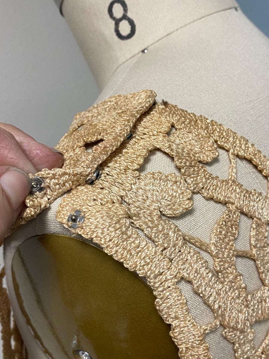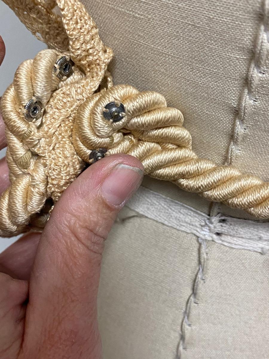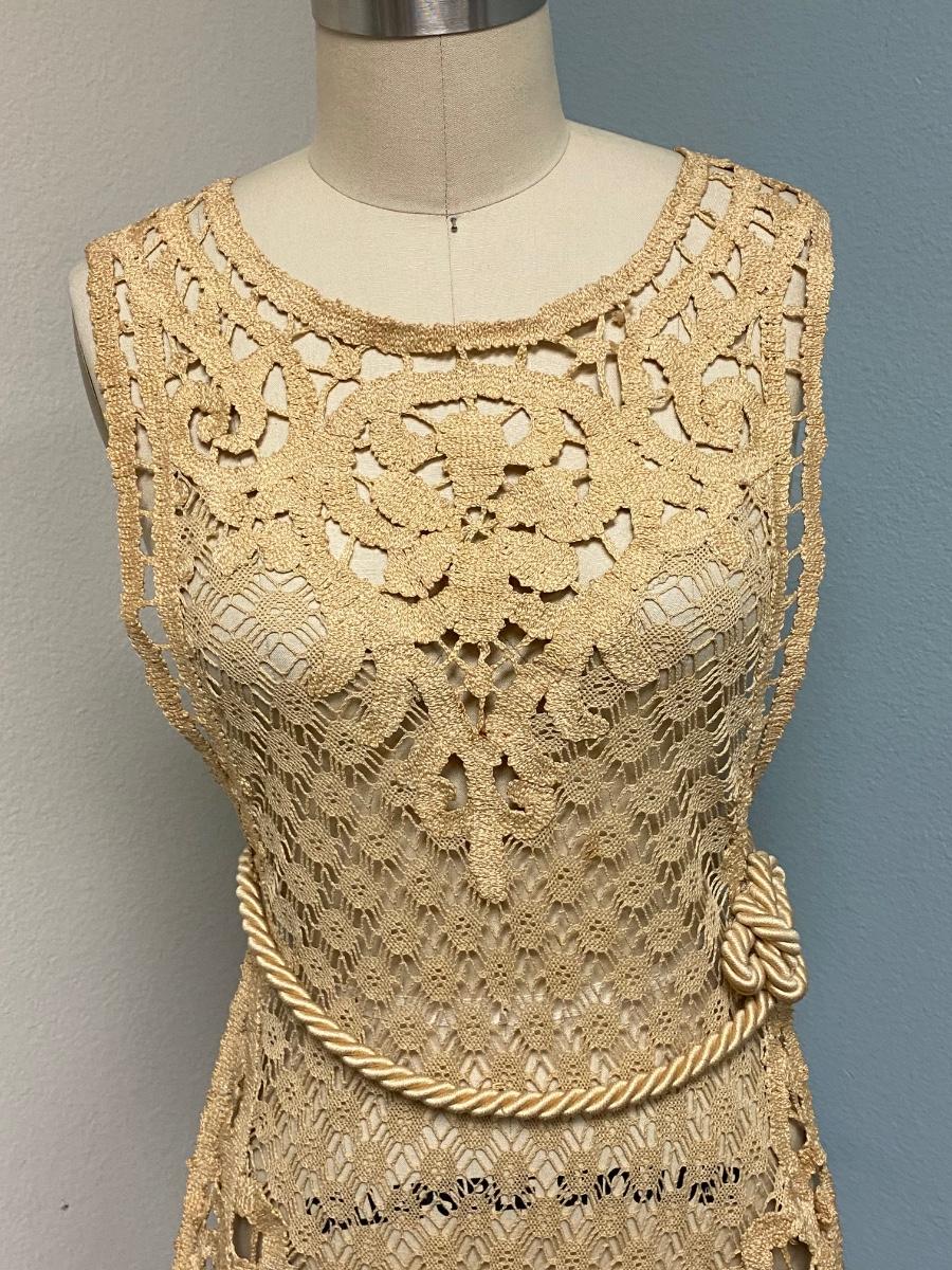 Vintage Antique Victorian 1920s Heavy Crochet Lace Cover Up Blouse Tunic Open Sides. Great piece of fashion. Thick crochet lace with rope style belt. Belt and one shoulder have snaps. In wearable condition. There is some discolor from age, but the lace looks like it may have been a darker ecru to begin with. There is a small spot on the front at chest, but it is not too noticeable.