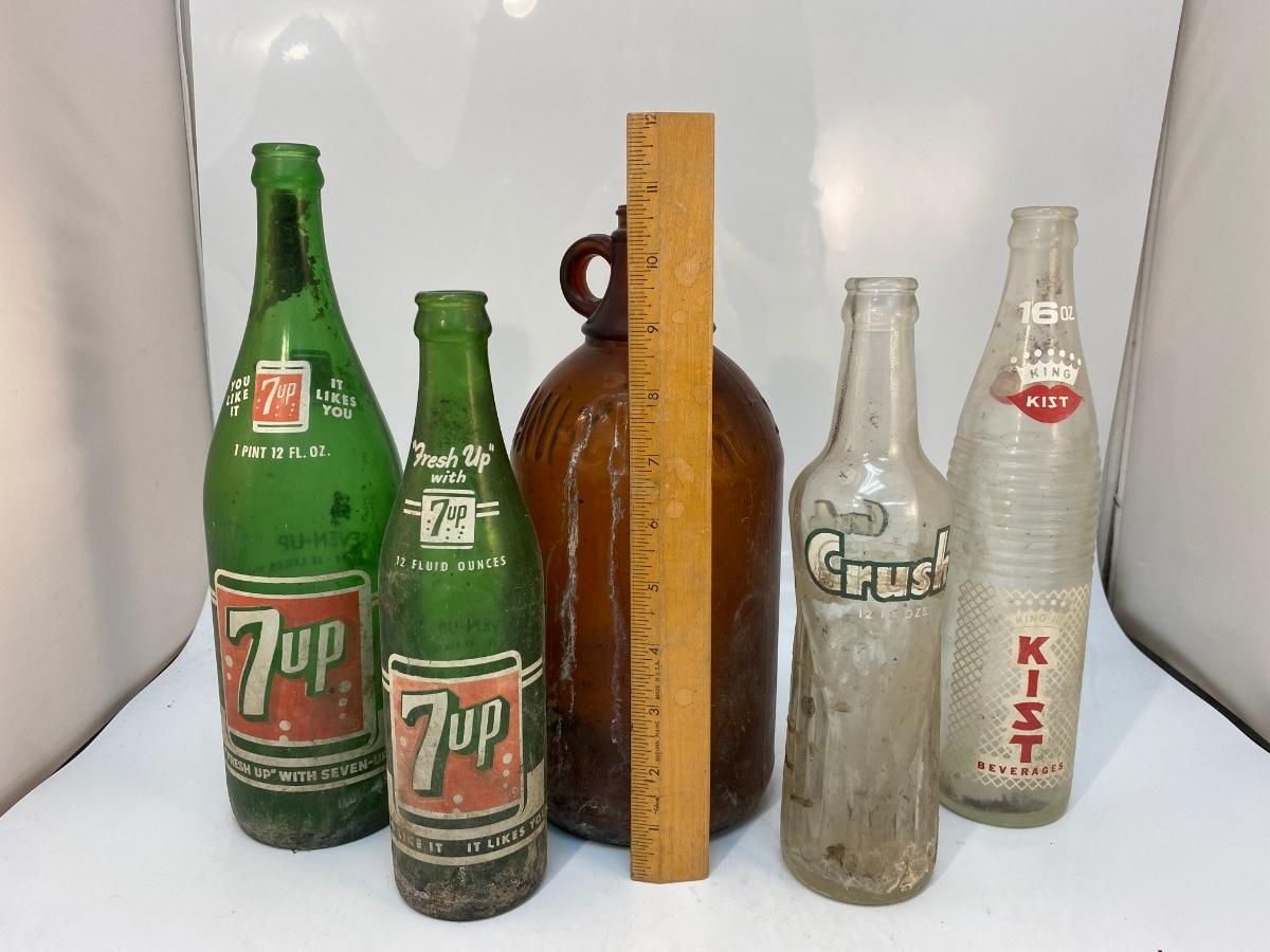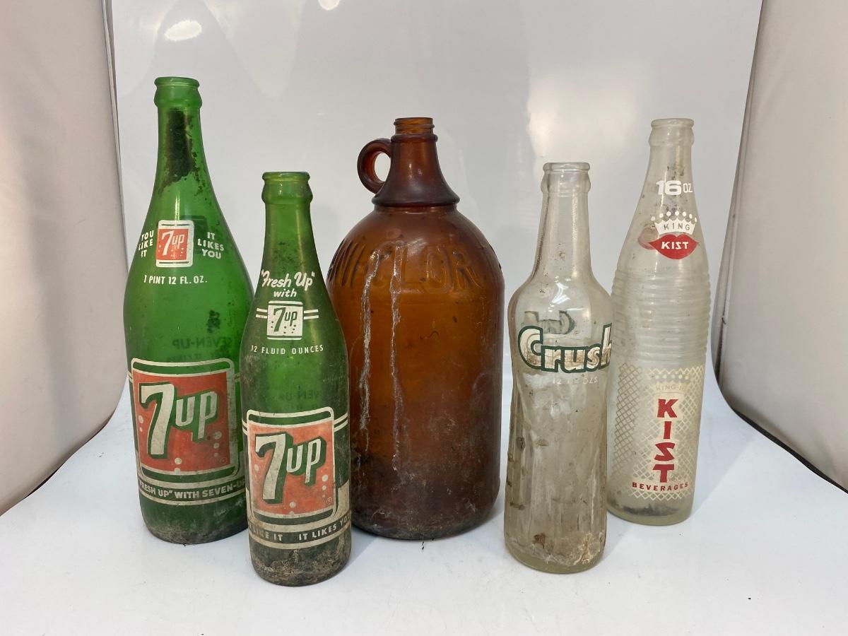 Vintage Lot of Weather Glass Bottles 7Up Crush Kist Clorox