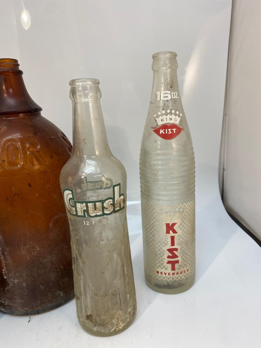 Vintage Lot of Weather Glass Bottles 7Up Crush Kist Clorox. Great for decor. They are weathered from age, storage, and display, might come cleaner not sure.