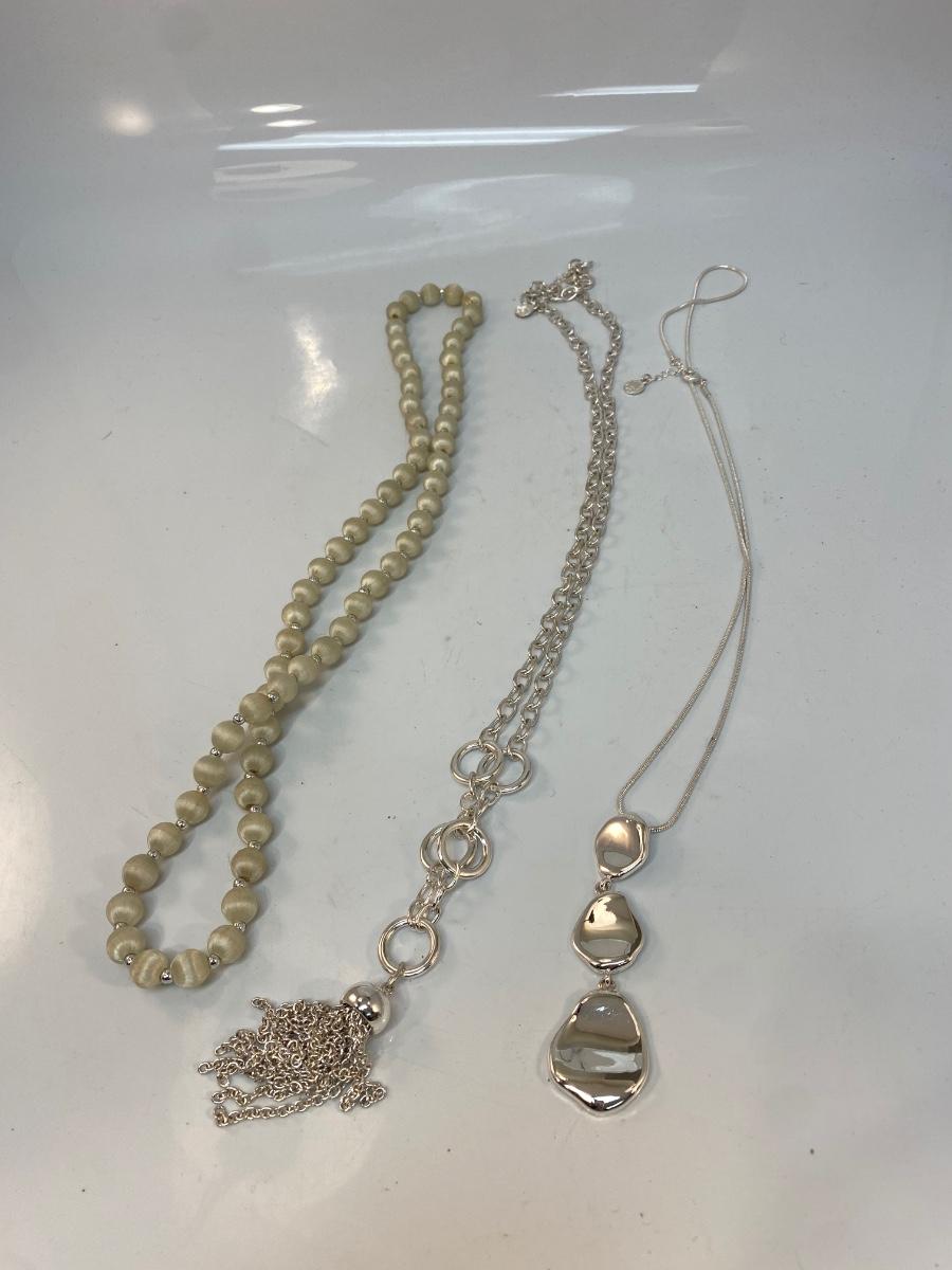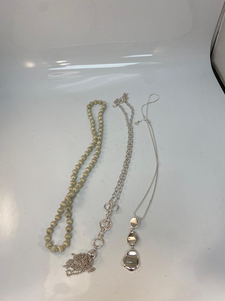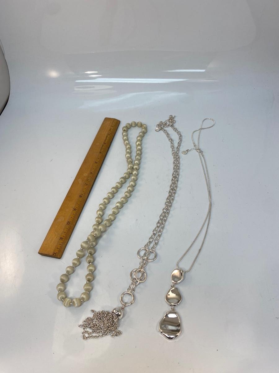 Silver Tone Necklace Lot Metal & Beaded Fashion Jewelry. Over 12" length. Good condition.