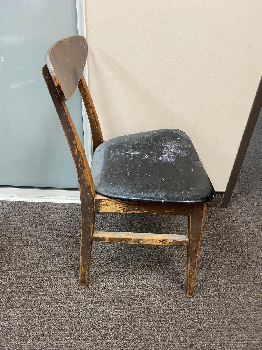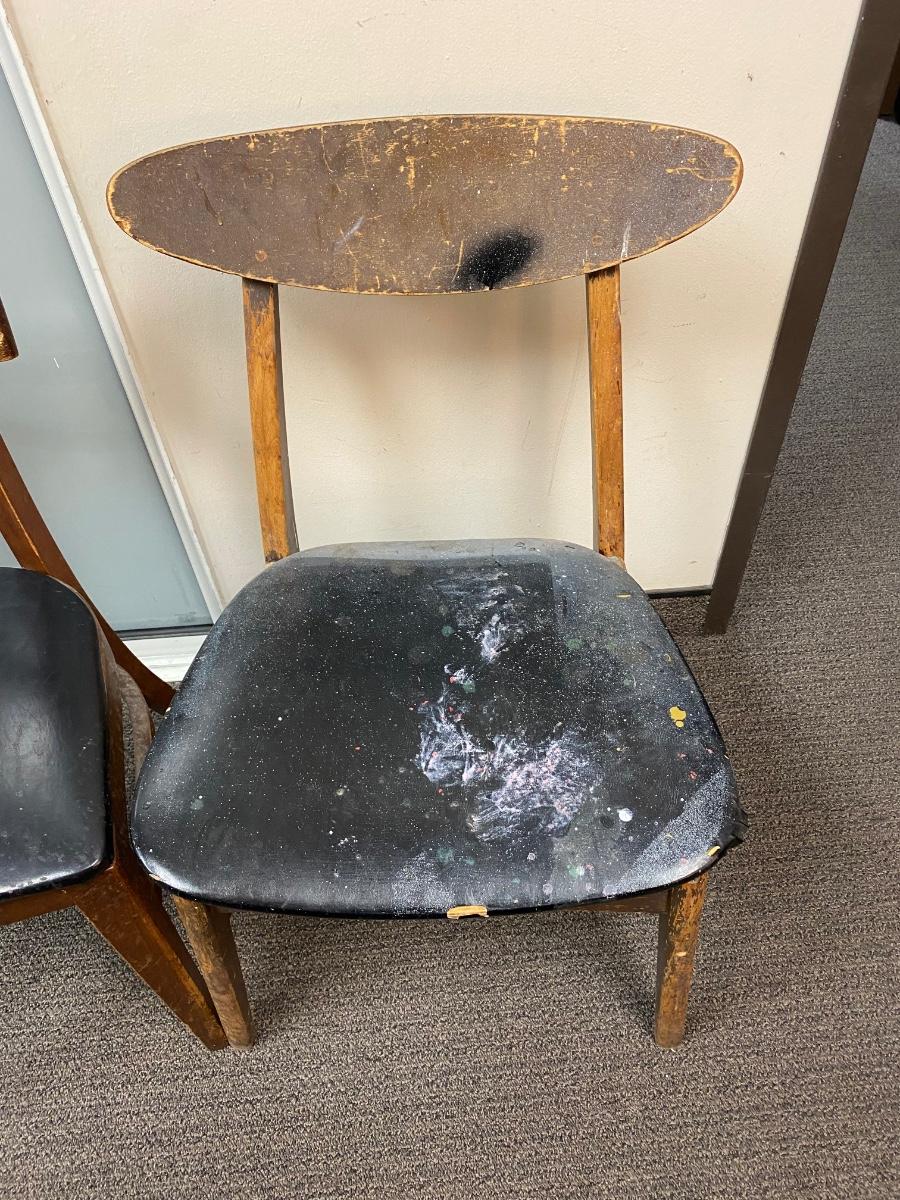 Pair of Vintage Mid-Century Wood Side Desk Chairs for Repair Repurpose. Need work but great form and style.