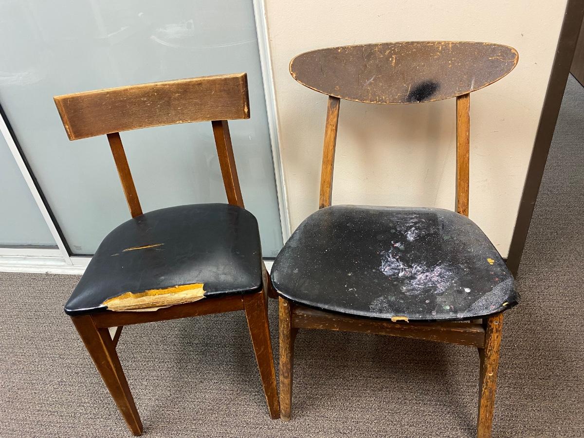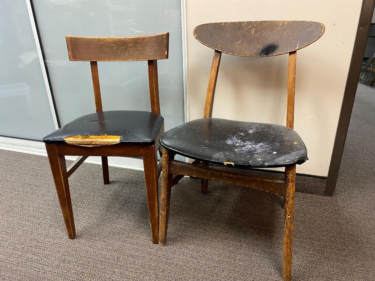 Pair of Vintage Mid-Century Wood Side Desk Chairs for Repair Repurpose