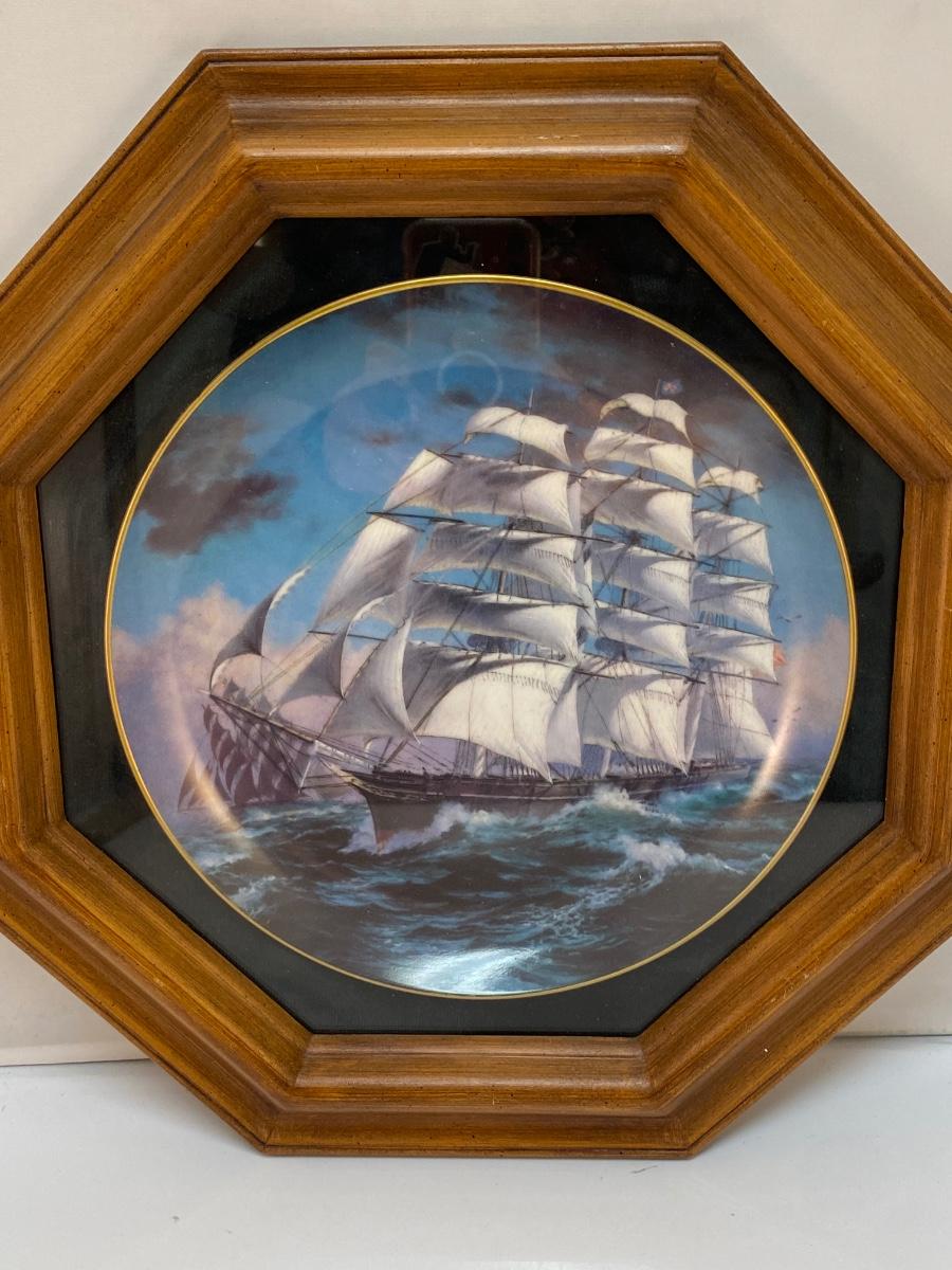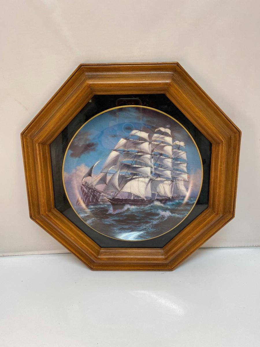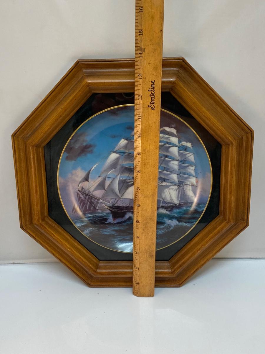 The Great Clipper Ships Plate Collection Cutty Sark Collector Plate in Octagon Frame. In good condition.