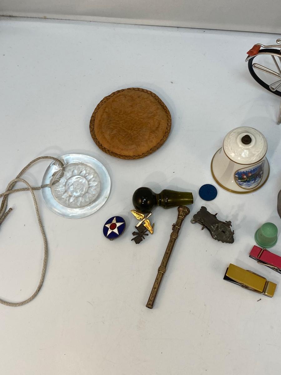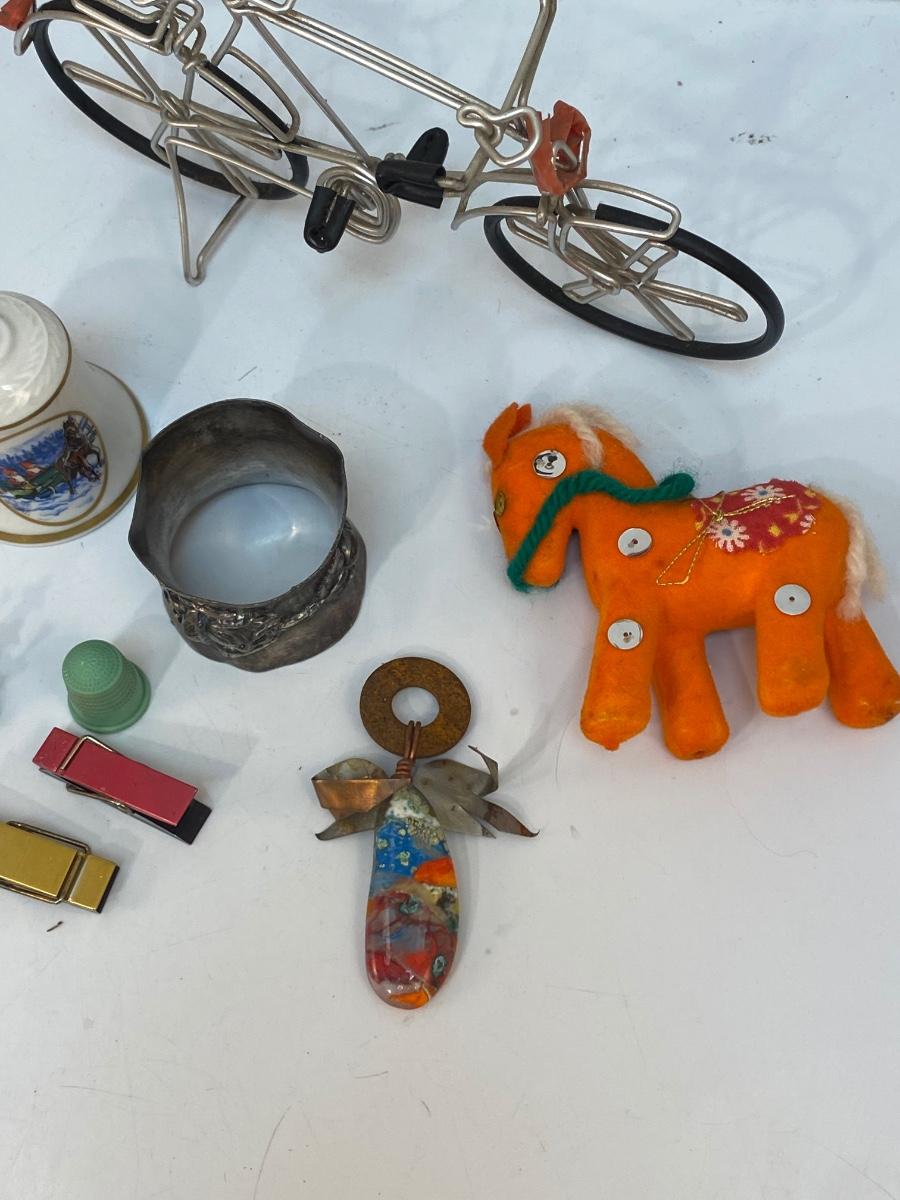 Mixed Lot of Random Trinkets Pins Clips Figurines and More. Everything photo'd included.