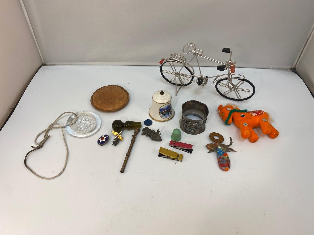 Mixed Lot of Random Trinkets Pins Clips Figurines and More