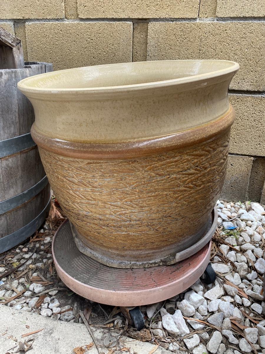Large Glazed Ceramic Planter Pot. Small damage at the bottom. PICK UP IN CYPRESS 6/3.