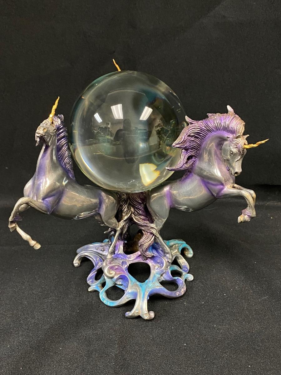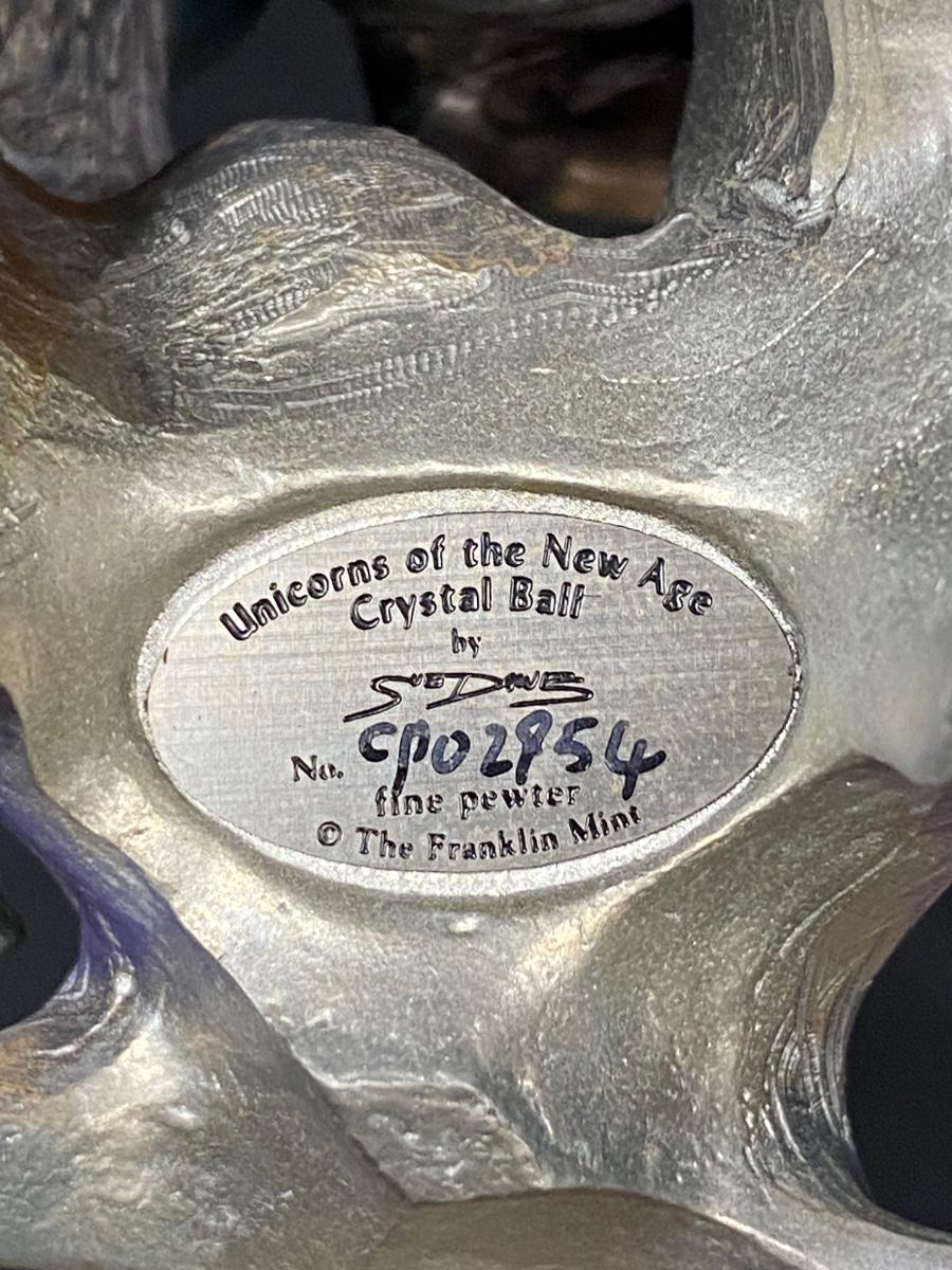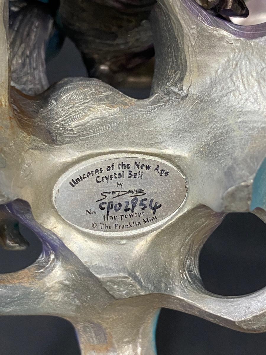 Unicorns of the New Age Pewter Crystal Ball by Sue Dawe The Franklin Mint Mystical