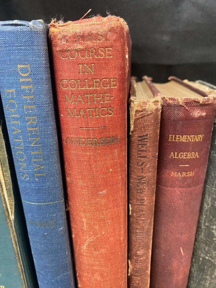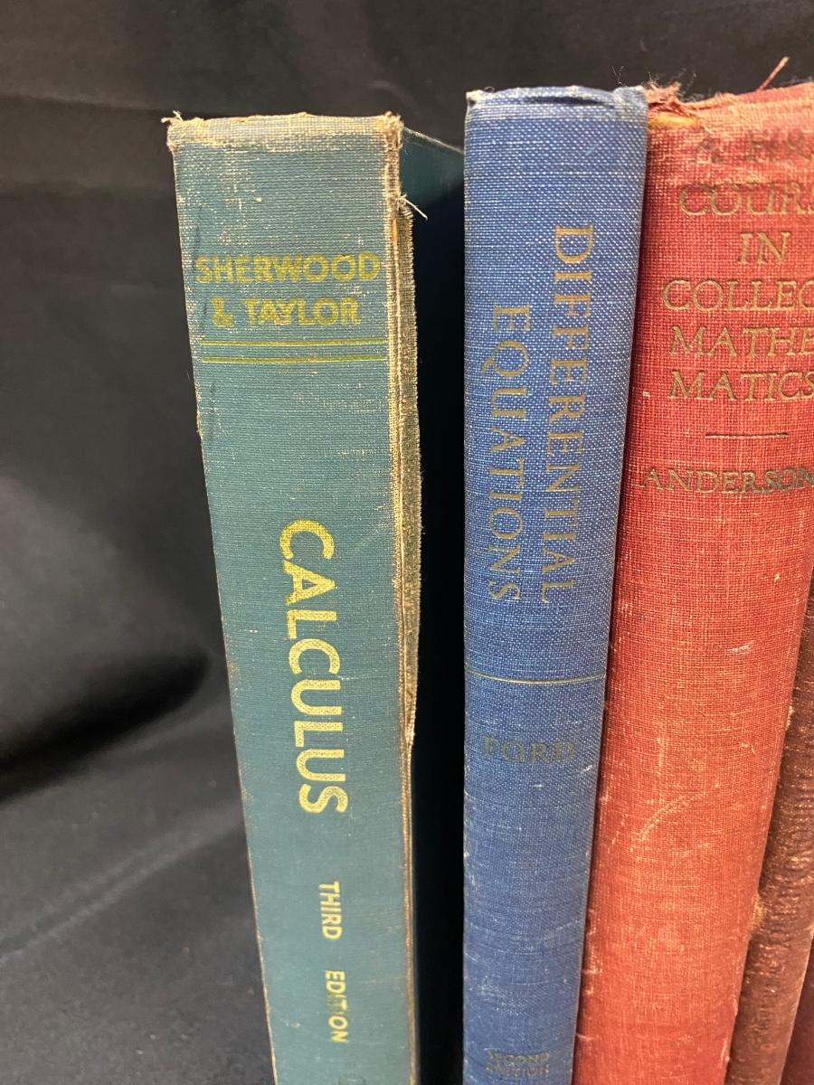 Mixed Lot of Antique & Vintage Advanced Mathematics Textbooks Math Books Calculus Trig Differential Equations. In worn condition. From 1910s to 1950s.