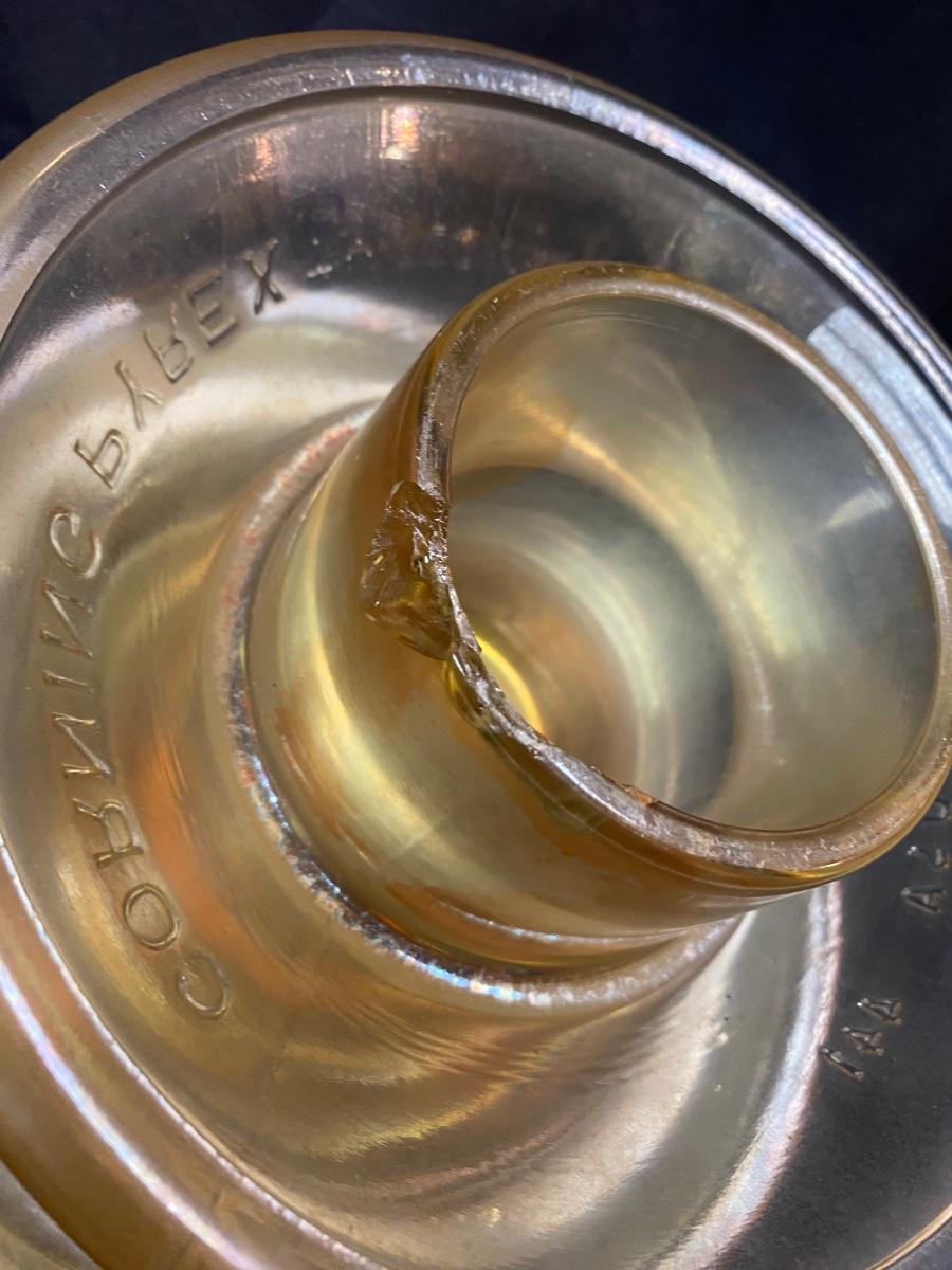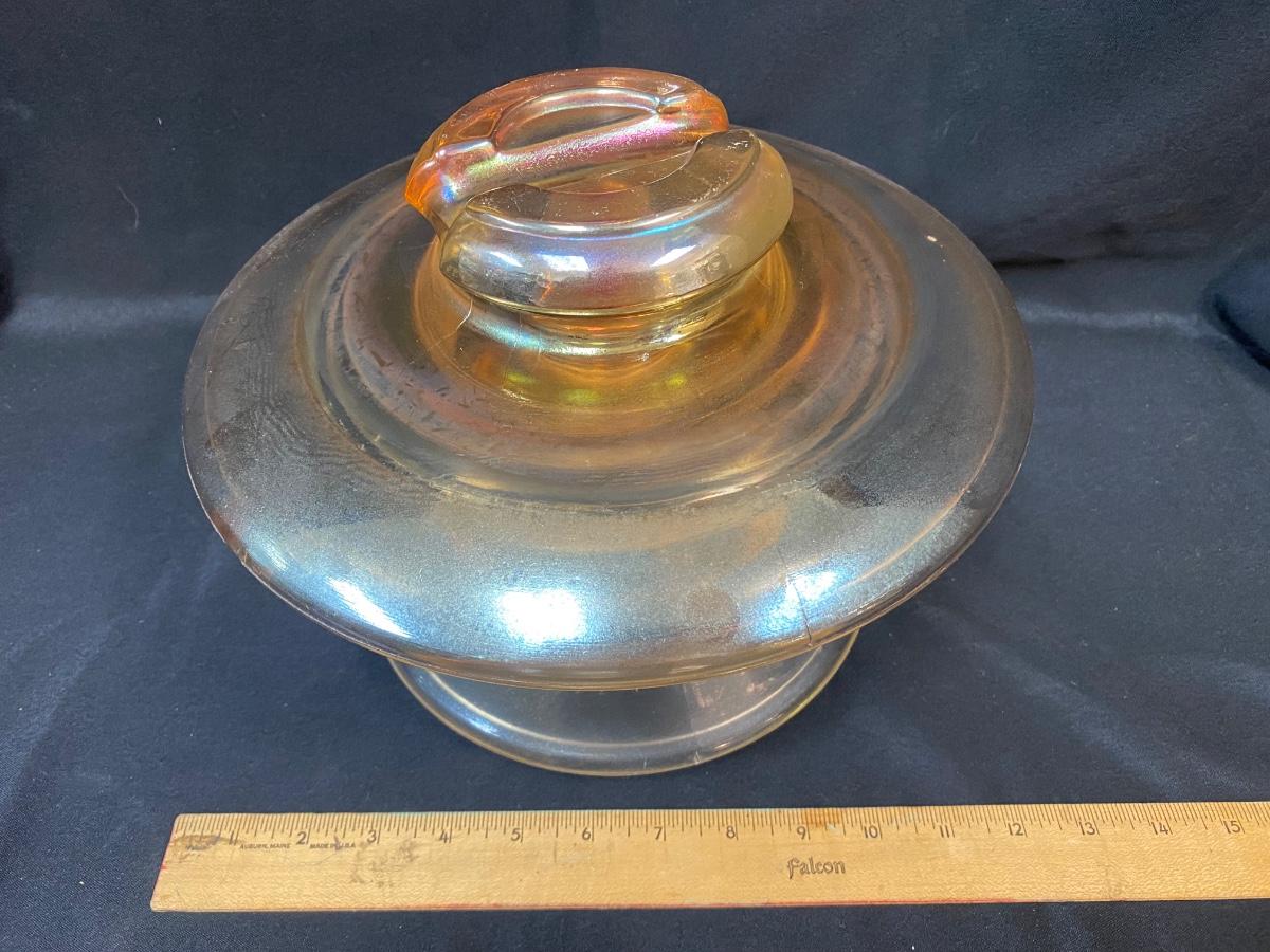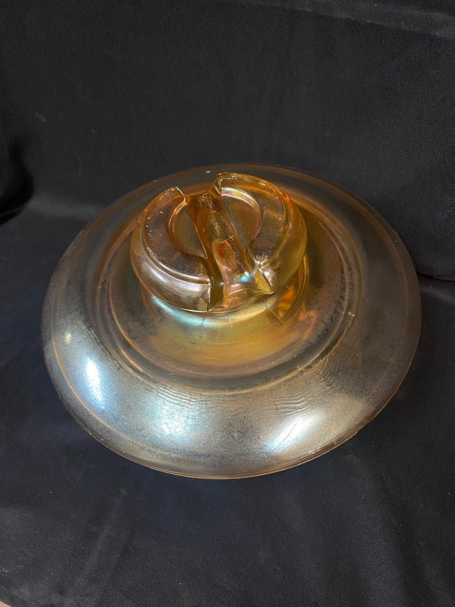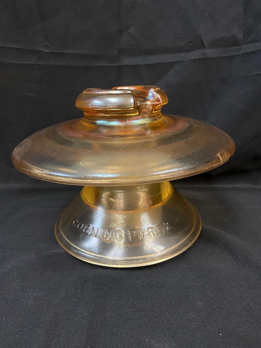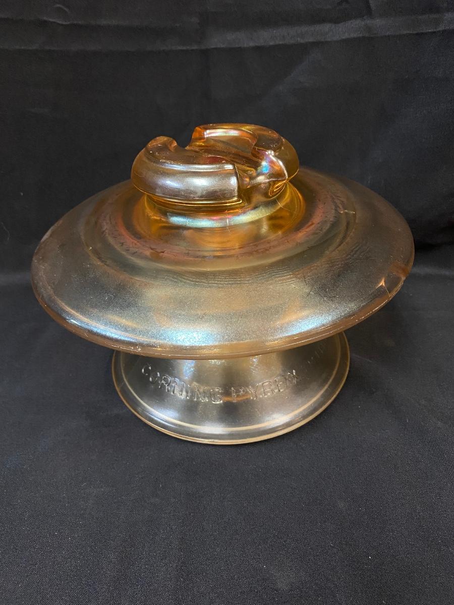 Large Vintage Corning Pyrex Marigold Luster Carnival Glass Power Line Insulator Cap #441