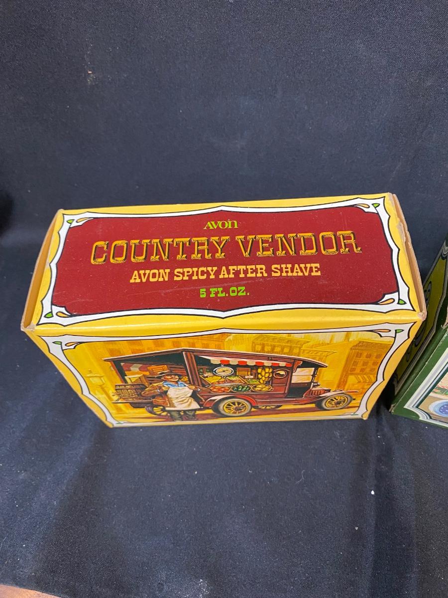 Pair of Vintage Avon Cologne Aftershave Car Auto Automobile Shaped Bottles Full in Original Box. Both bottles are full in their original boxes. In good vintage condition.
