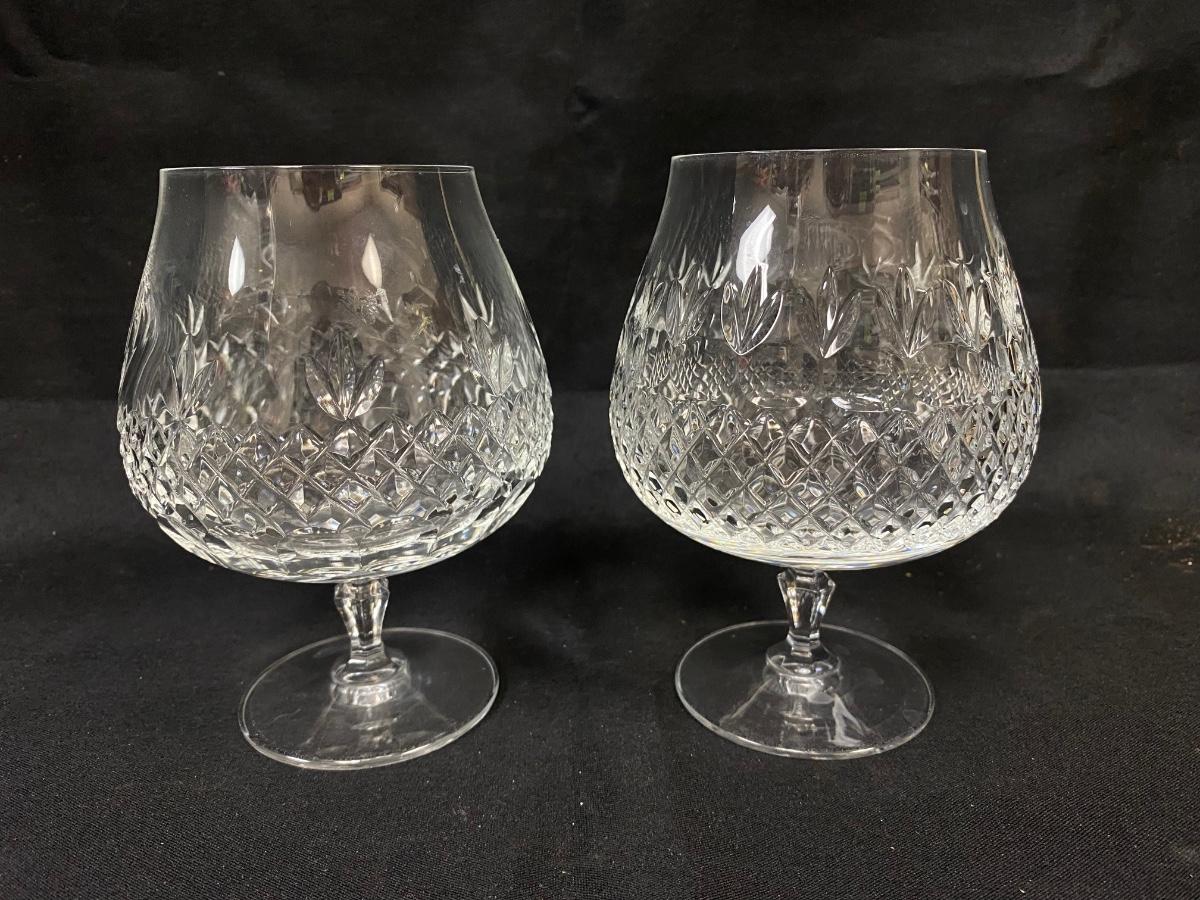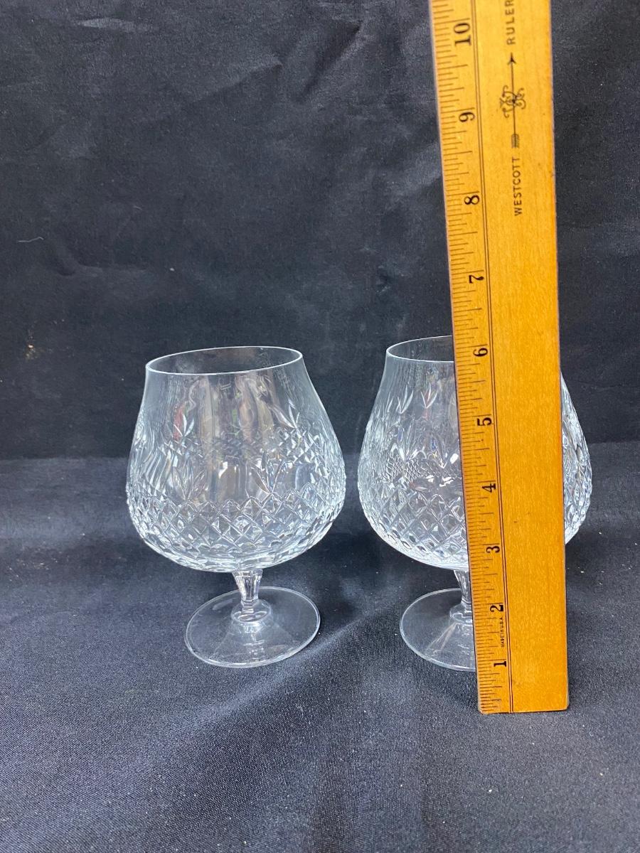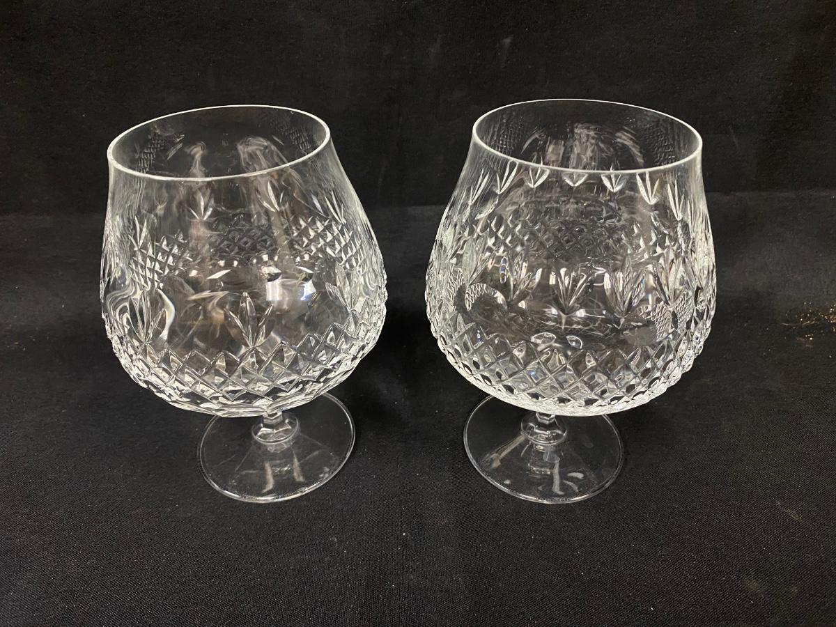 Pair of Vintage Cut Crystal Brandy Snifter Drink Glasses