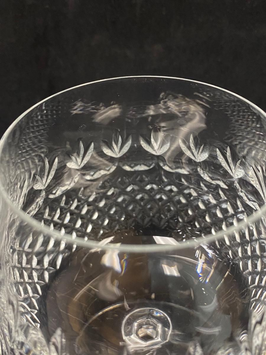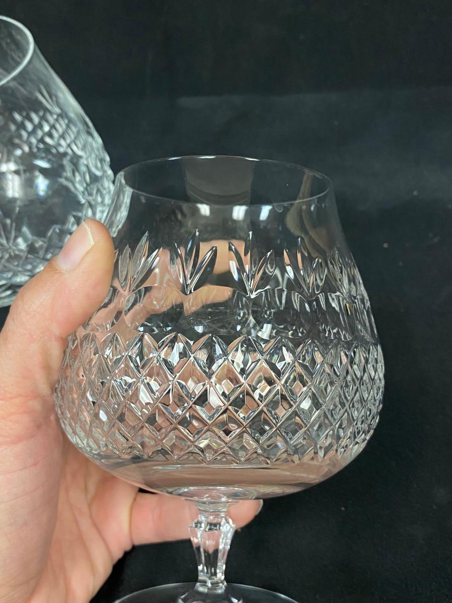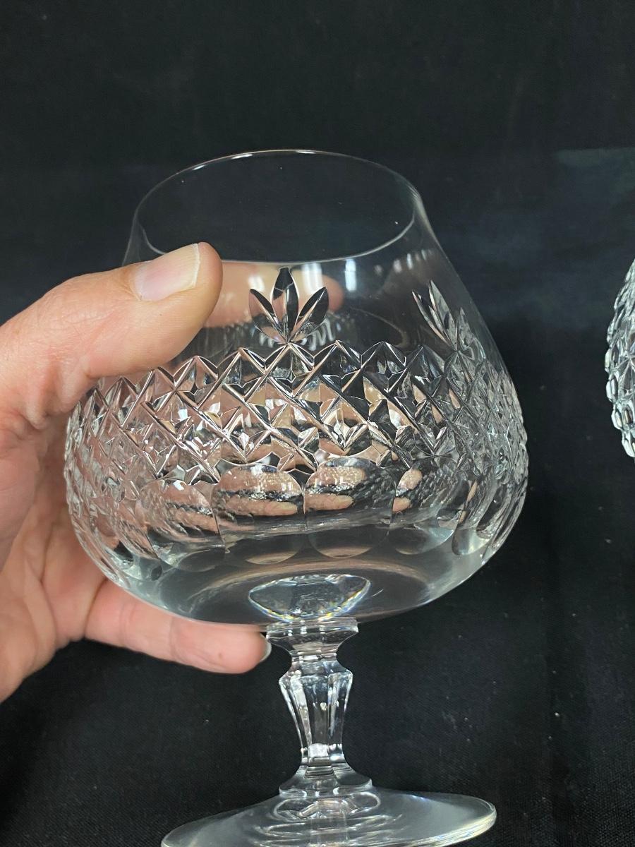 Pair of Vintage Cut Crystal Brandy Snifter Drink Glasses. Similar patterns, no maker marks. In good condition.