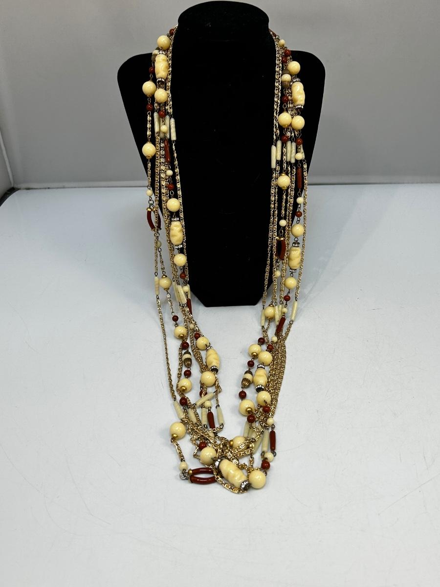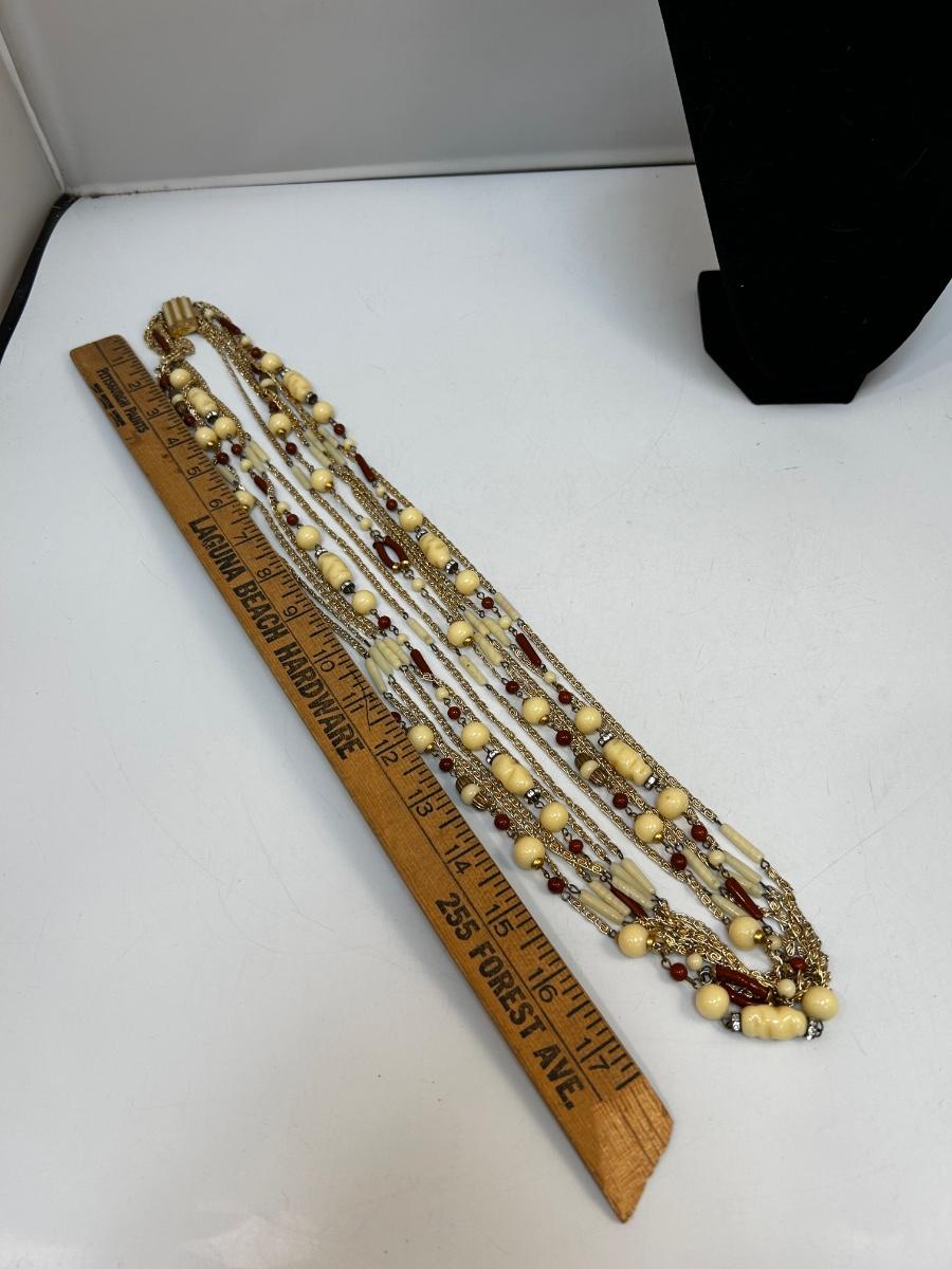 Vintage Gold Tone and Bead Multistrand Fashion Necklace. In good vintage condition.