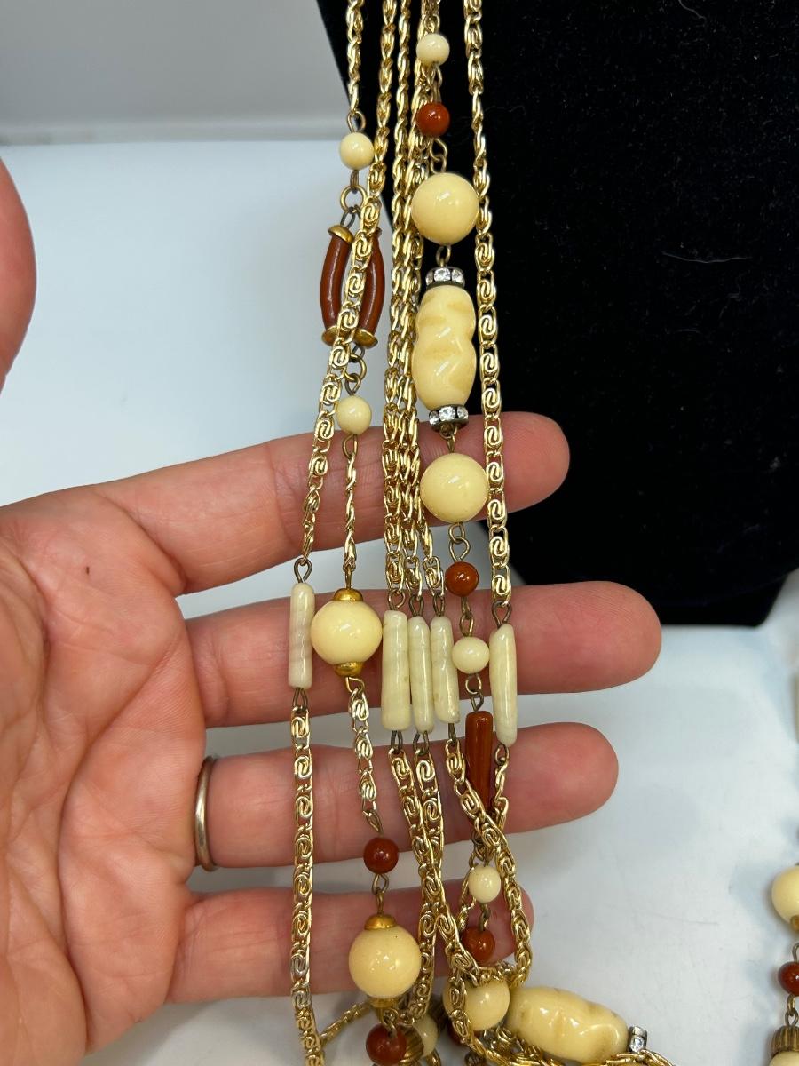 Vintage Gold Tone and Bead Multistrand Fashion Necklace