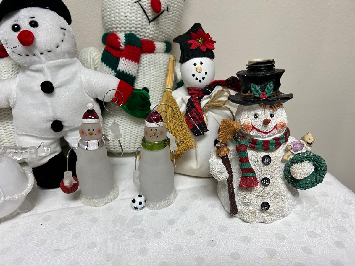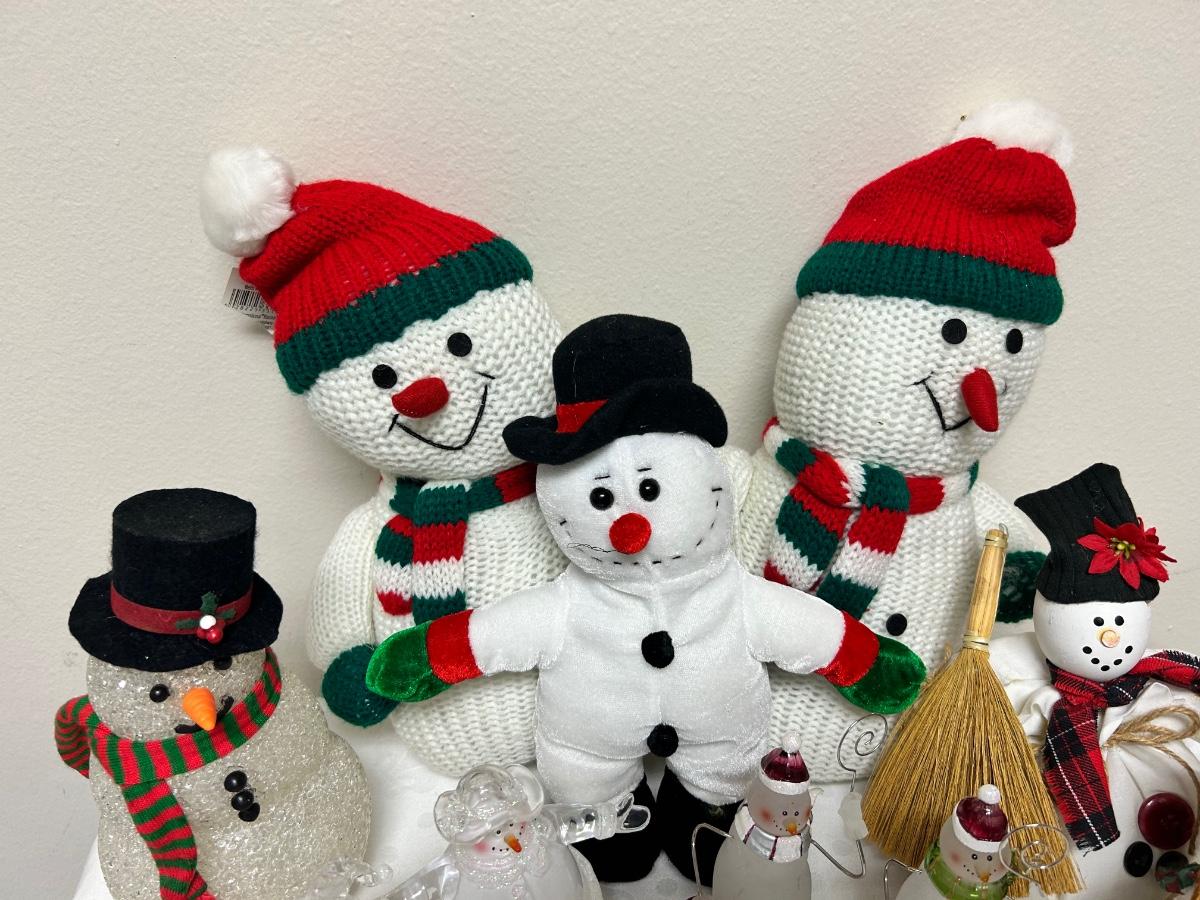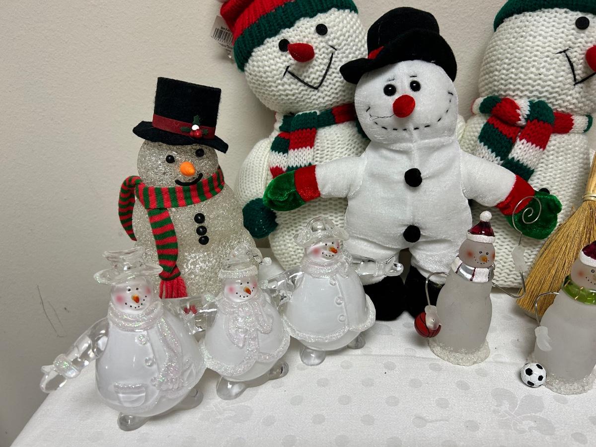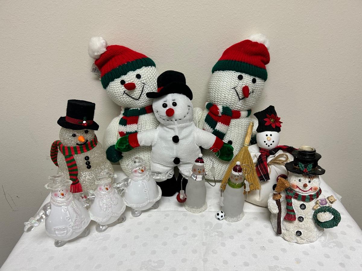 Christmas Holiday Snowman Lot Figurines and Plush. In previously displayed condition.
