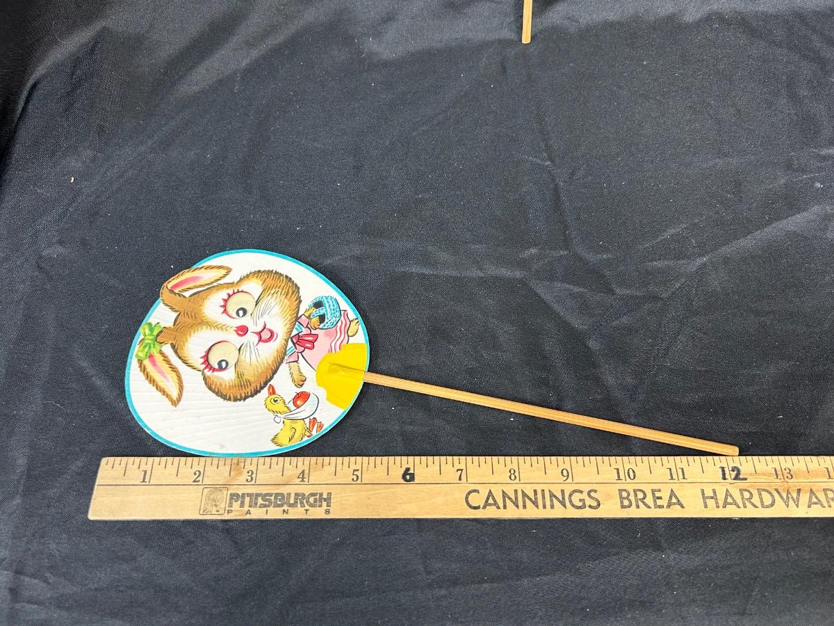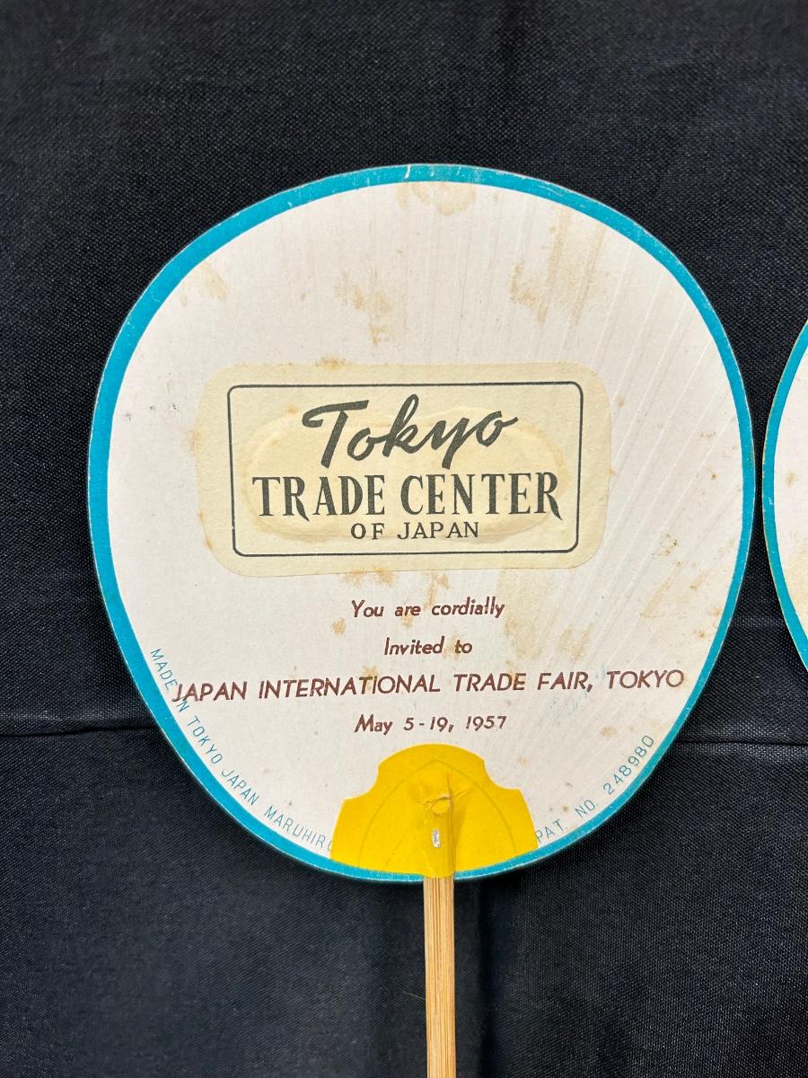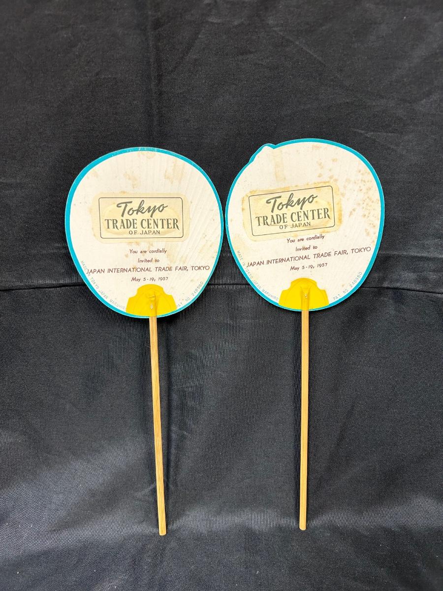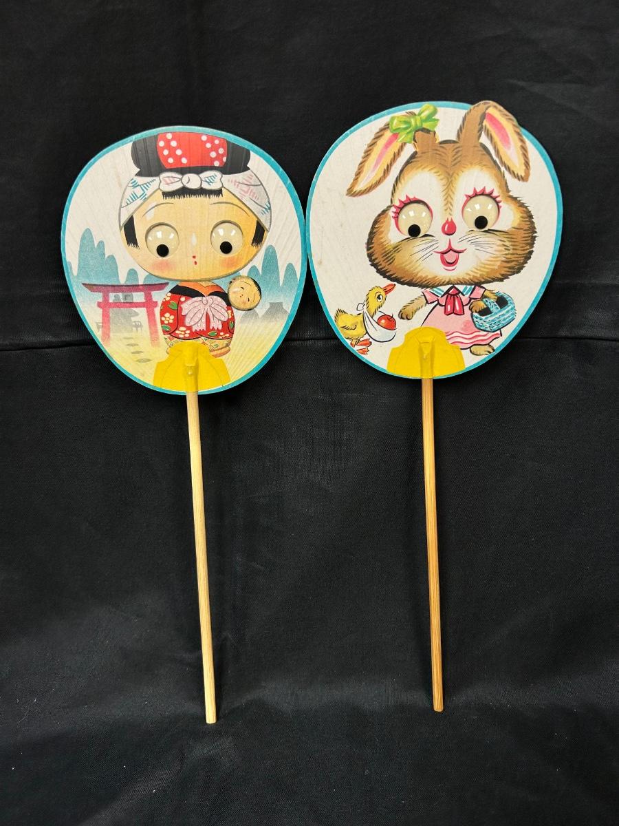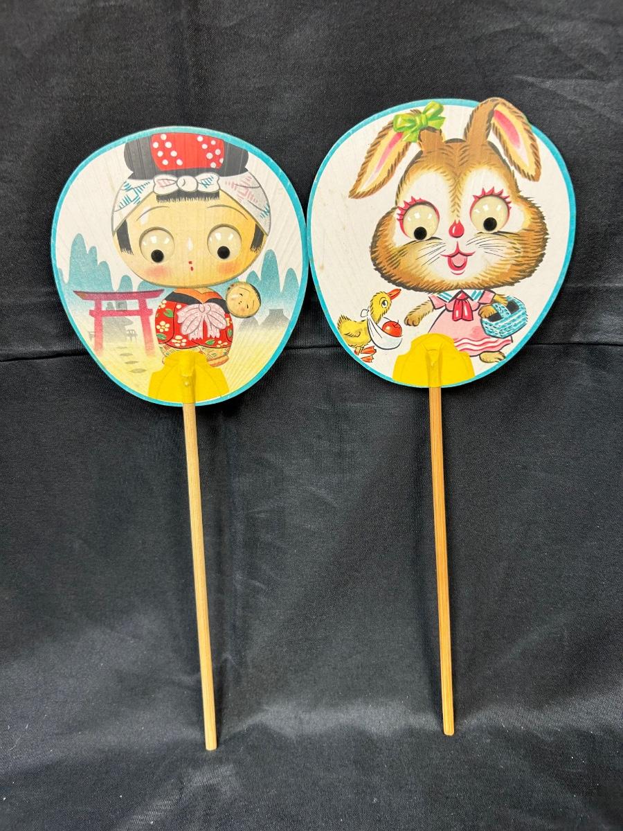 Pair of Googly Eyed Novelty Hand Fans Japan International Trade Fair Tokyo 1957