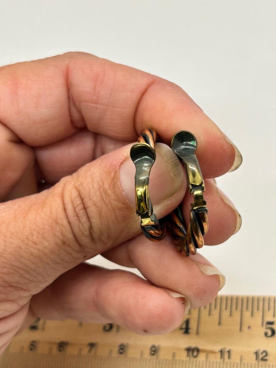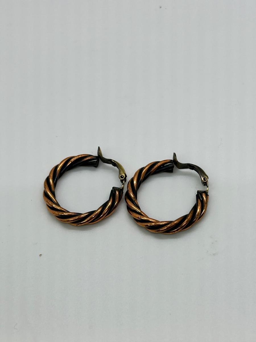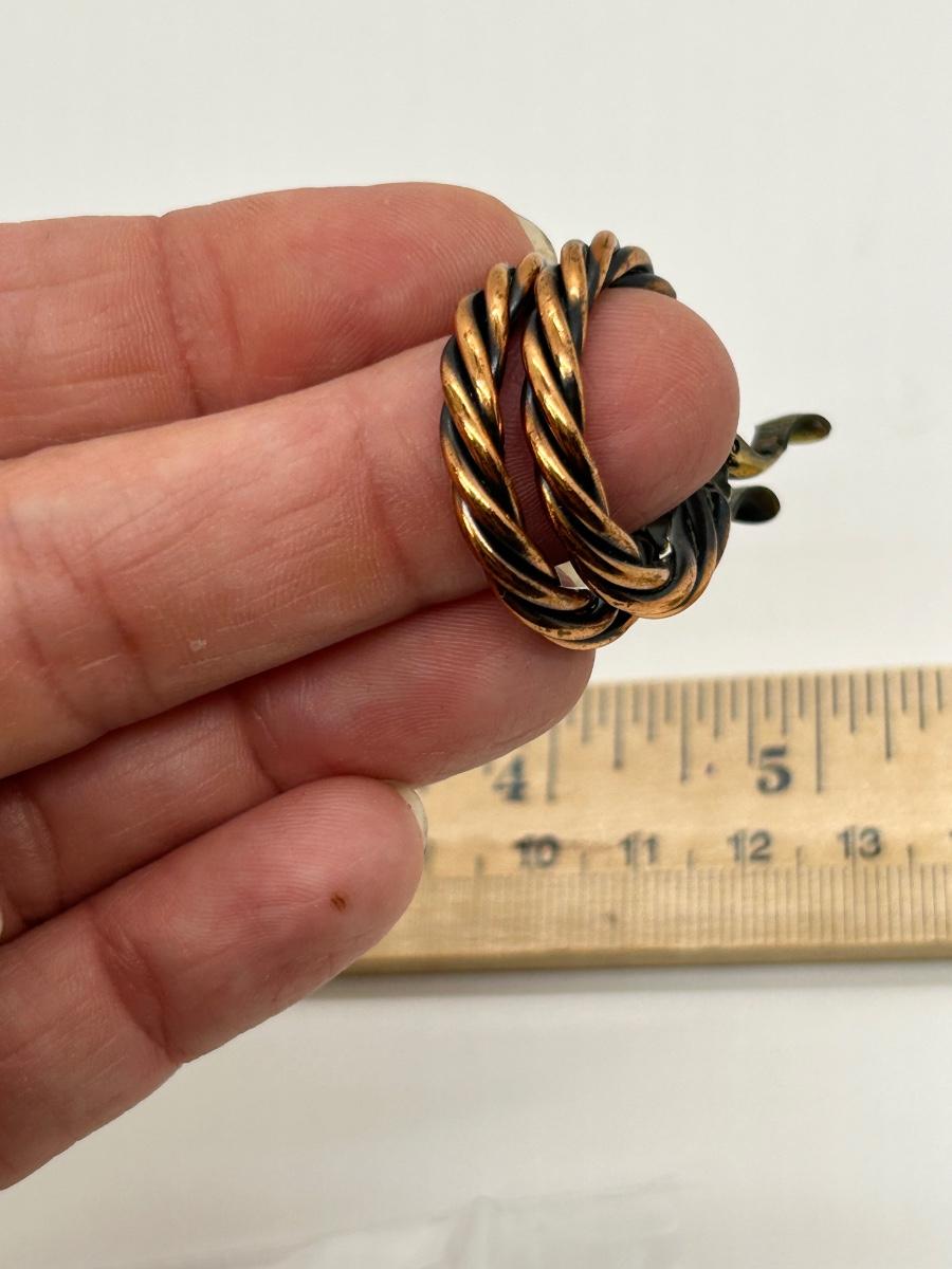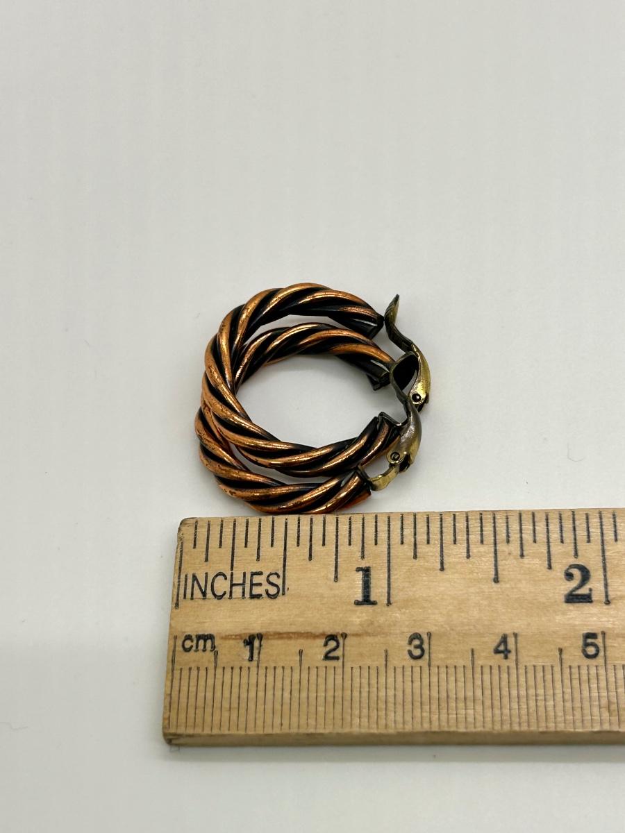 Clip Style Twisted Copper Wire Hoop Earrings. In good condition. Unmarked.